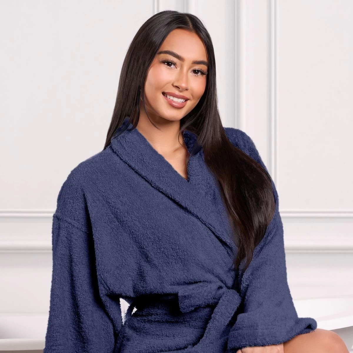 Brentfords 100% Cotton Towelling Dressing Gown – Navy Blue