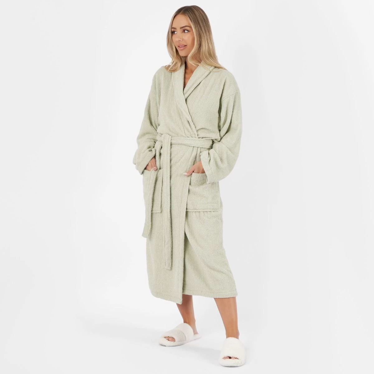 Brentfords 100% Cotton Towelling Dressing Gown, Sage – Adults