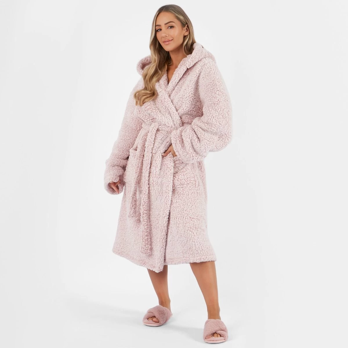 Includes: 1 x Teddy Fleece Hooded Dressing Gown.