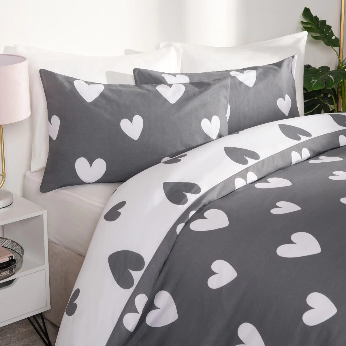 This duvet cover set from Dreamscene will be sure to brighten your room with the colourful heart print design. This duvet is made from a soft polycotton blend, 50% cotton and 50% polyester. This bedding set is soft, comfortable and durable, allowing for a relaxing nights sleep. Available in the following sizes:-