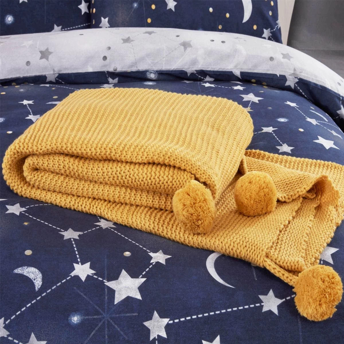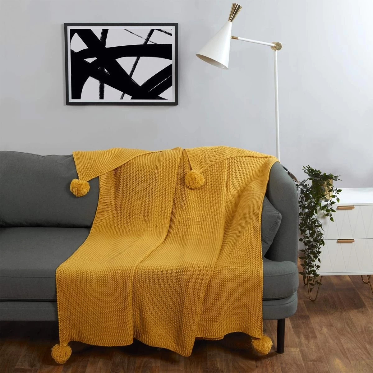 This luxurious chunky knit blanket is ideal for use as a throw over furniture such as couches, beds and sofa beds. The yarn knit is complimented by a pom pom at each corner, thereby adding a vibrant colour and decorative feel to any room. The thick weave will help you to keep exceptionally warm on those chilly nights. It’s multi purpose use allows for travelling, glamping or camping as it can be easily rolled up and stored in a bag or in the car. Never be lonely again when you snuggle up to this blanket.