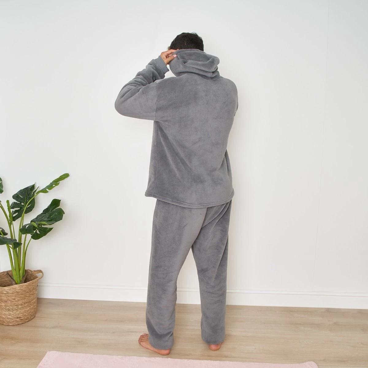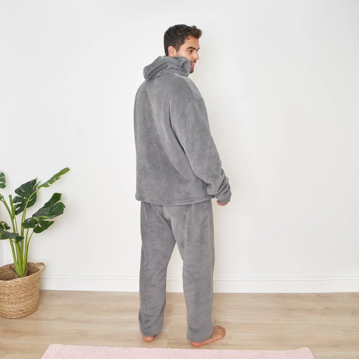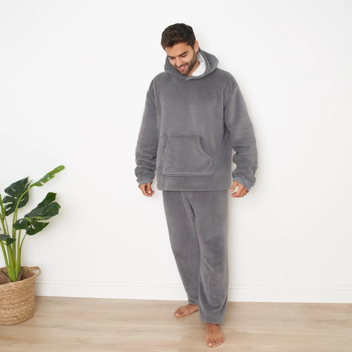Comfy, stylish and snuggly, our coral fleece pyjama set from the Dreamscene range is soft and cosy, making it perfect for lounging around, for use as nightwear, or even for the ultimate working from home look. This item included a hooded jumper top, and a jogger style bottom, both with soft coral fleece outer layer, and a cosy sherpa fleece lining. The joggers have an elasticated waist and cuffs, while the top has a hood, large front pocket, and finished with elasticated cuffs.