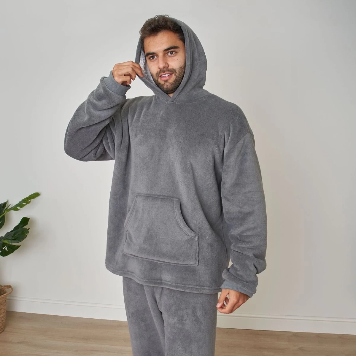 Material: 100% soft polyester with sherpa lining, and elasticated hem.
