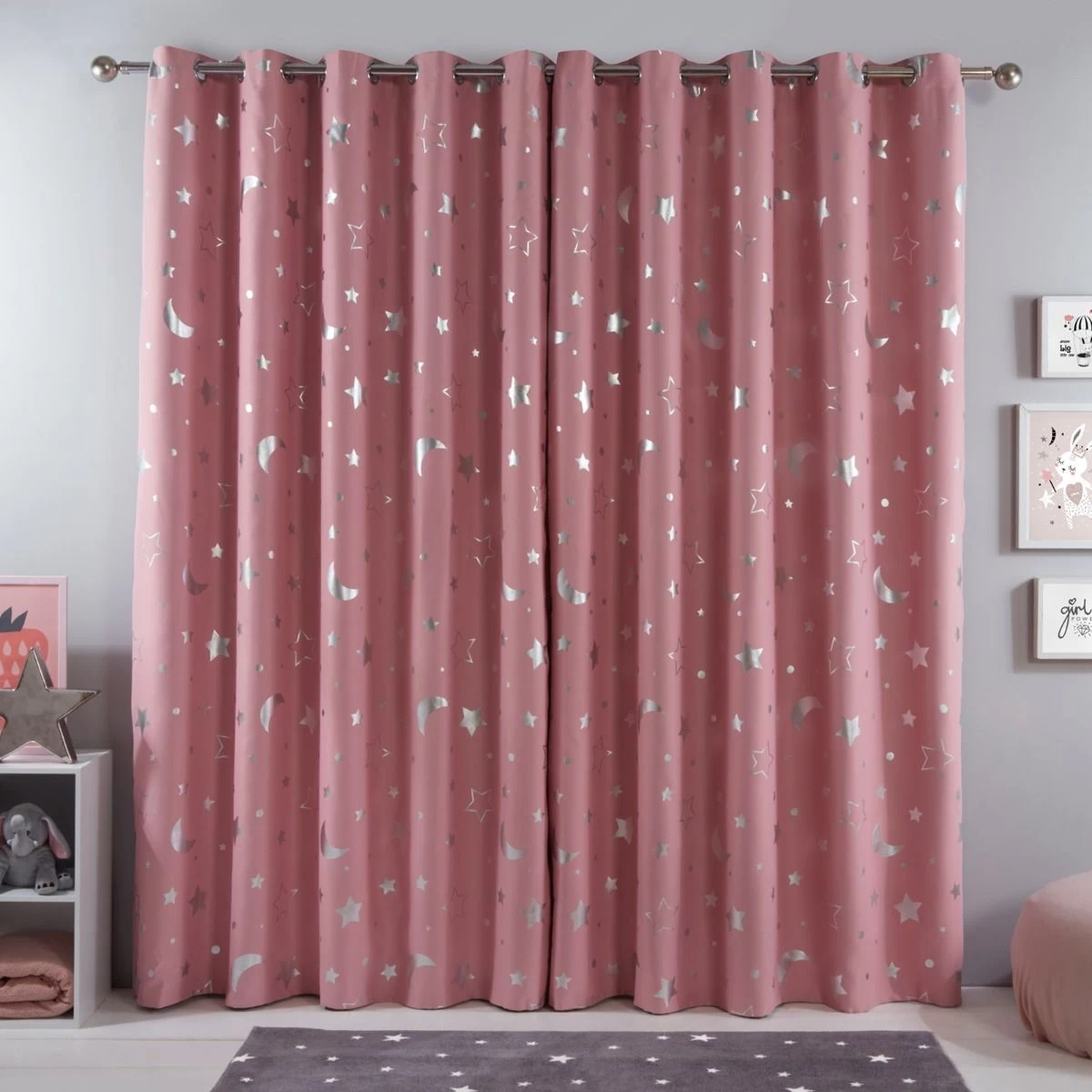 Dreamscene Star Blackout Galaxy Kids Curtains – Blush Pink