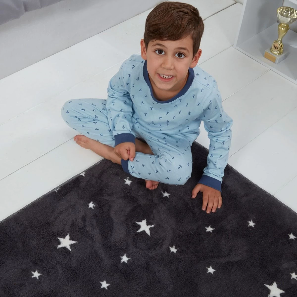 This soft kids star print floor rug from the Dreamscene will add a fun, and colourful look with its soft warm touch, and the short smooth fibres ensure a cosy versatile look. Created in charcoal grey with a white star print, this ensures the rug can be paired with other colours in the home. With its non-shed qualities and stitched, folded and glued edges, this modern runner rug is soft, durable and long lasting, adding a vibrant colour to any room. The PVC dot material backing means this is non-skid and makes for practical use. Available in two sizes: