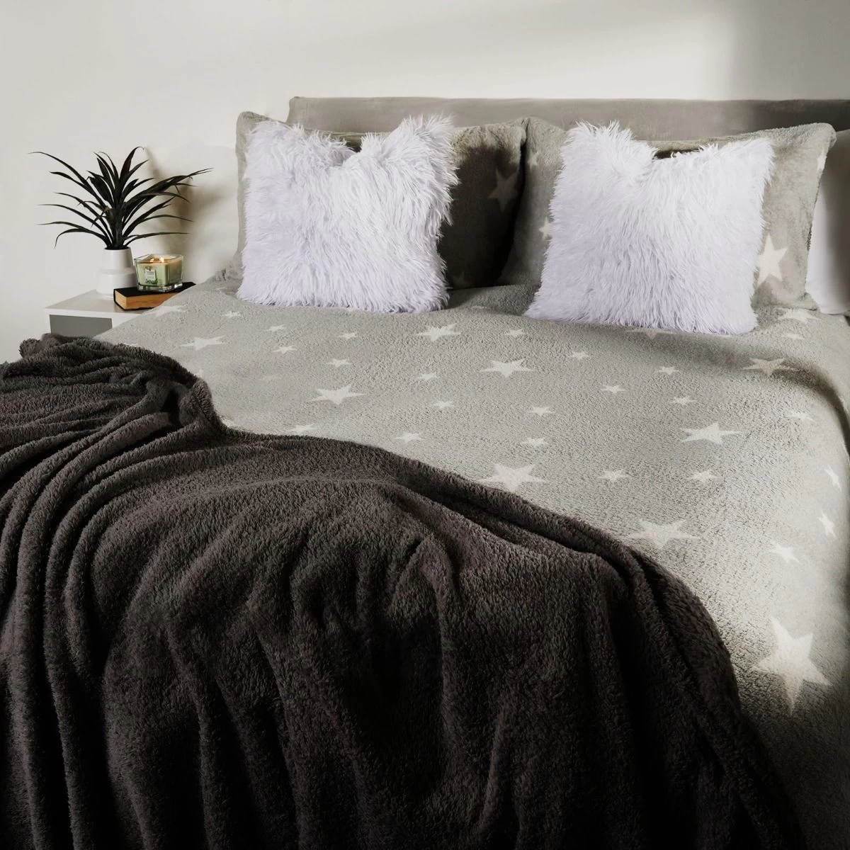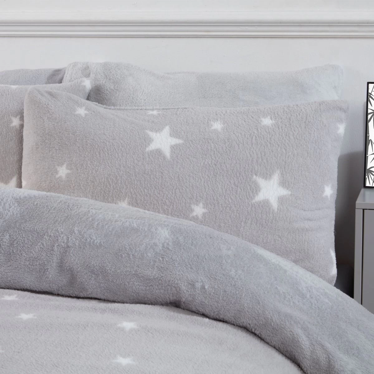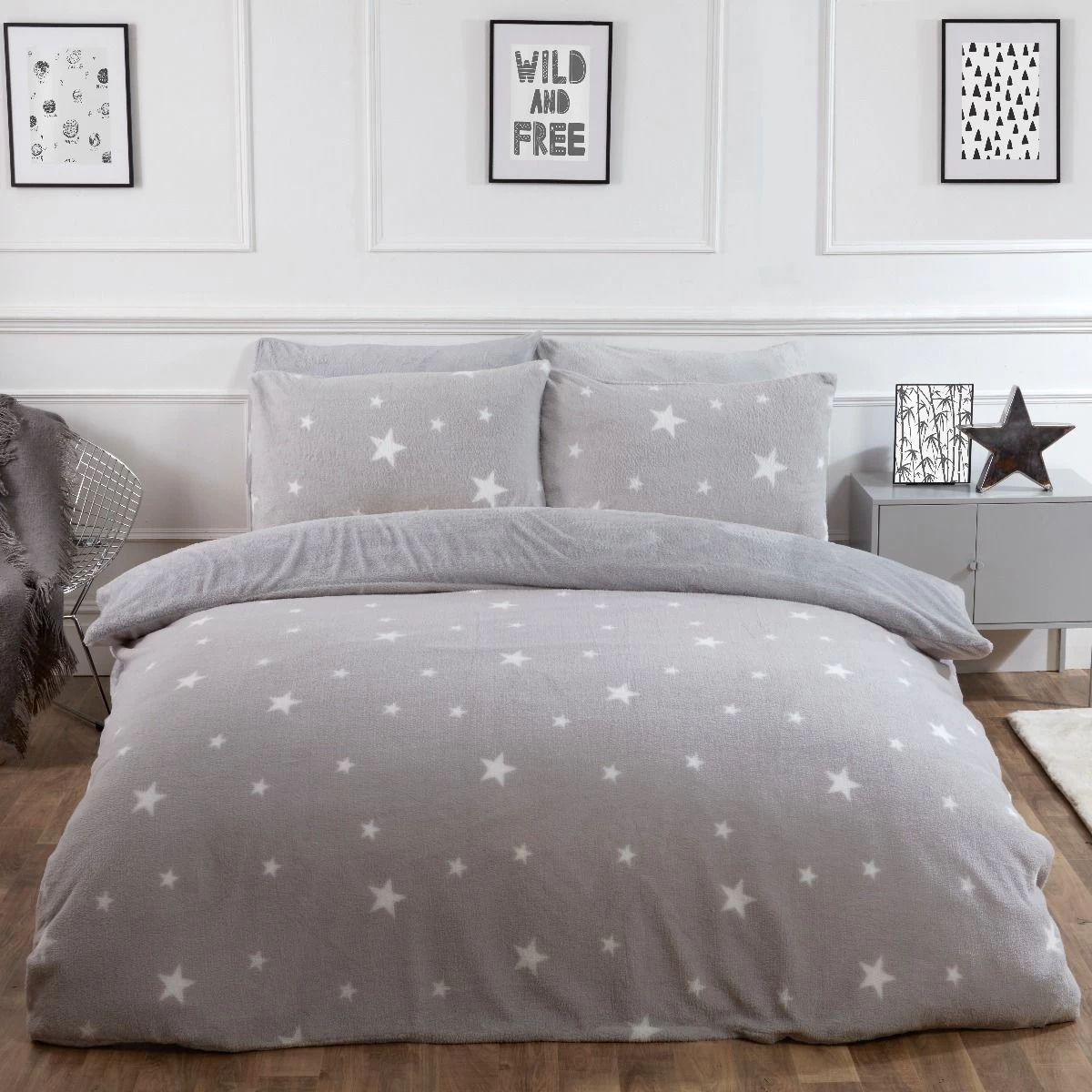 Get ready for those cold wintry nights with our star print teddy fleece duvet set, which will look great in any bedroom, and is a perfect way to give your room a vibrant, warm fresh look. This duvet set is made from super soft touch teddy fleece polyester, with a bold star pattern on the front and plain teddy on the reverse, making it comfortable and durable with added warmth and texture. This ultra soft easy-care bed linen will give your bedroom that modern feel and once washed it has great resistance to wrinkles, fading and shrinkage. This warm fleece teddy set includes a duvet cover and matching pillow case(s), all you need for a good nights sleep. Available in the following sizes:-