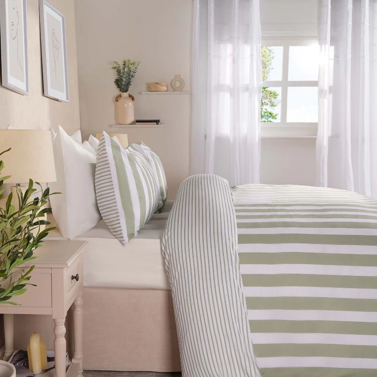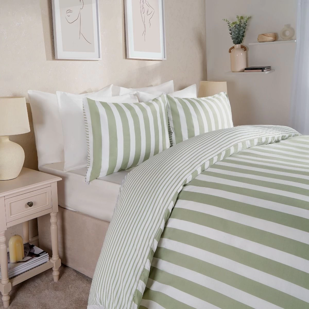 This duvet cover set from Dreamscene will be sure to brighten your room with the trendy stripe print design. This duvet is made from a soft polycotton blend, 50% cotton and 50% polyester. This bedding set is soft, comfortable and durable, allowing for a relaxing nights sleep. Available in the following sizes:-