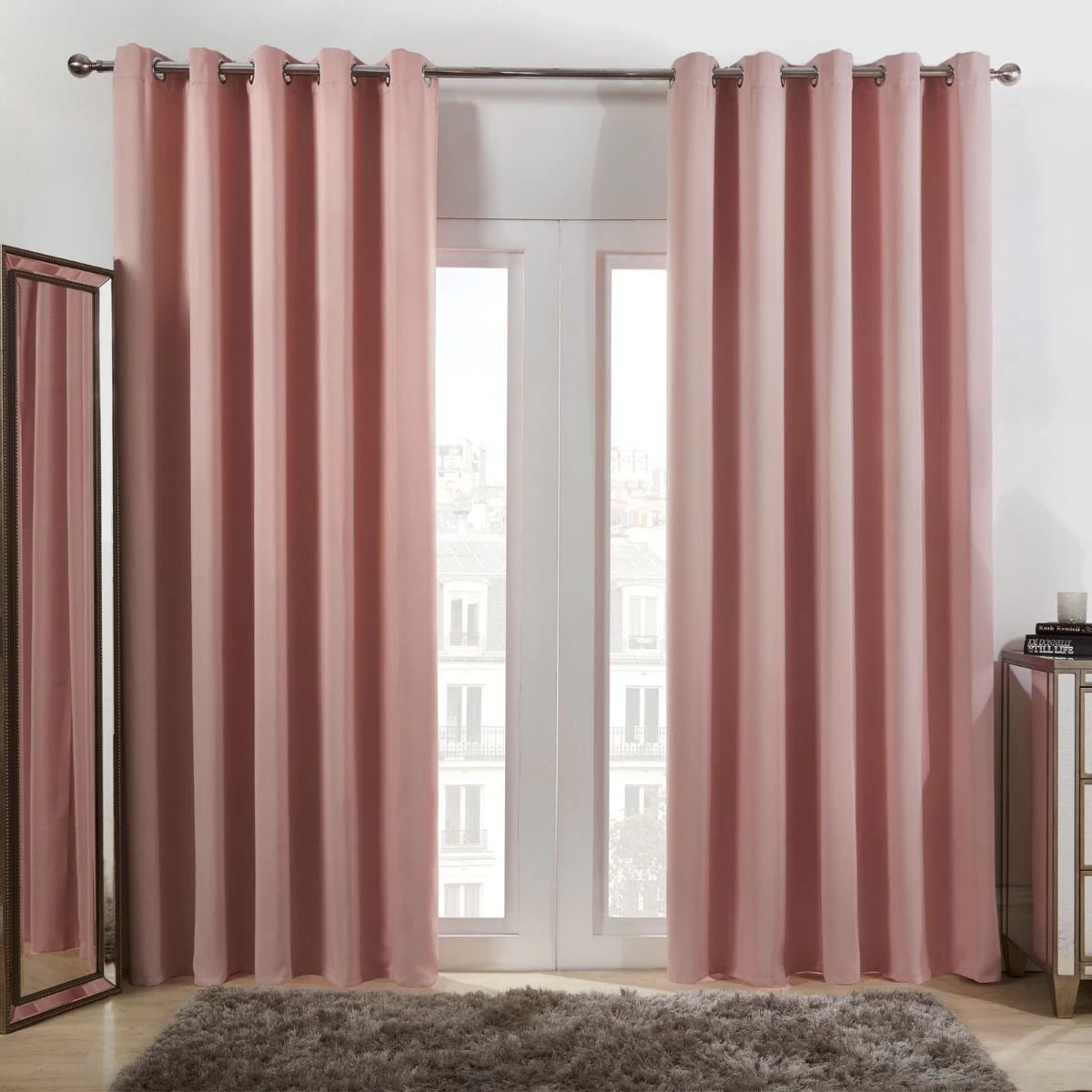 Eyelet Blackouts Include: A pair of 2 curtains. Please note the door curtain – 66″ x 84″ – is only one panel.