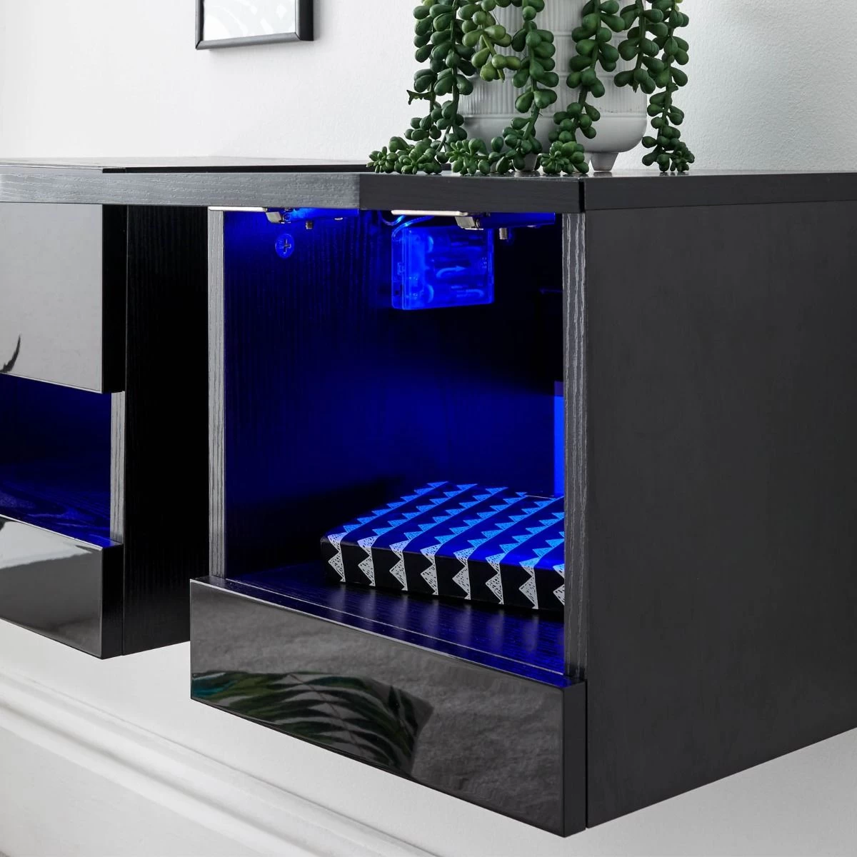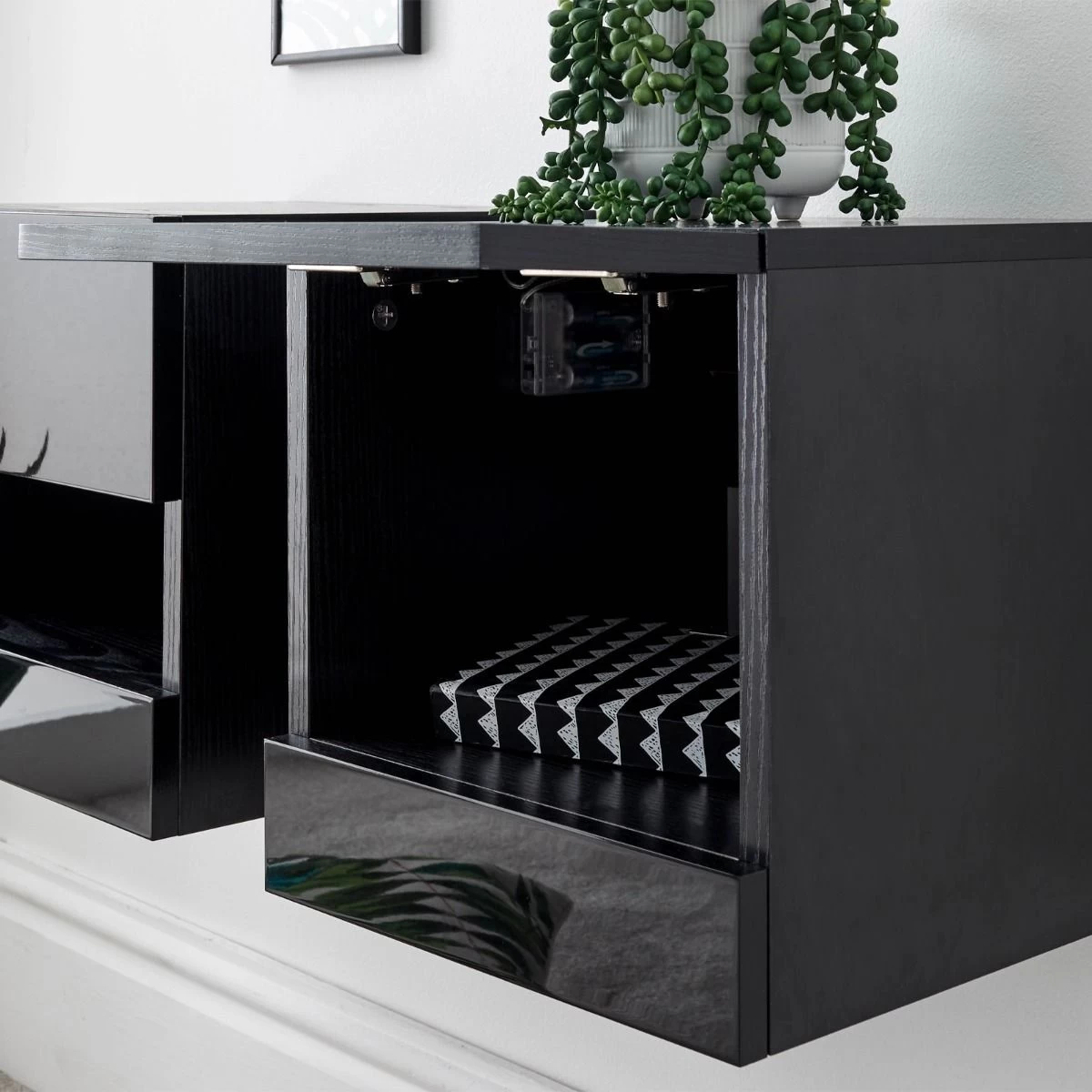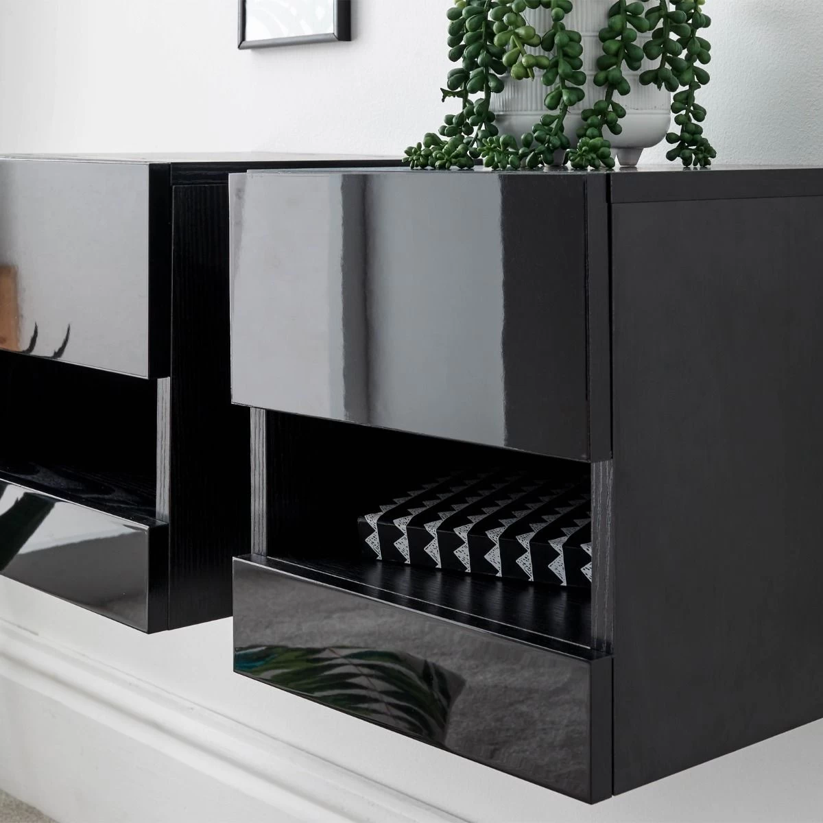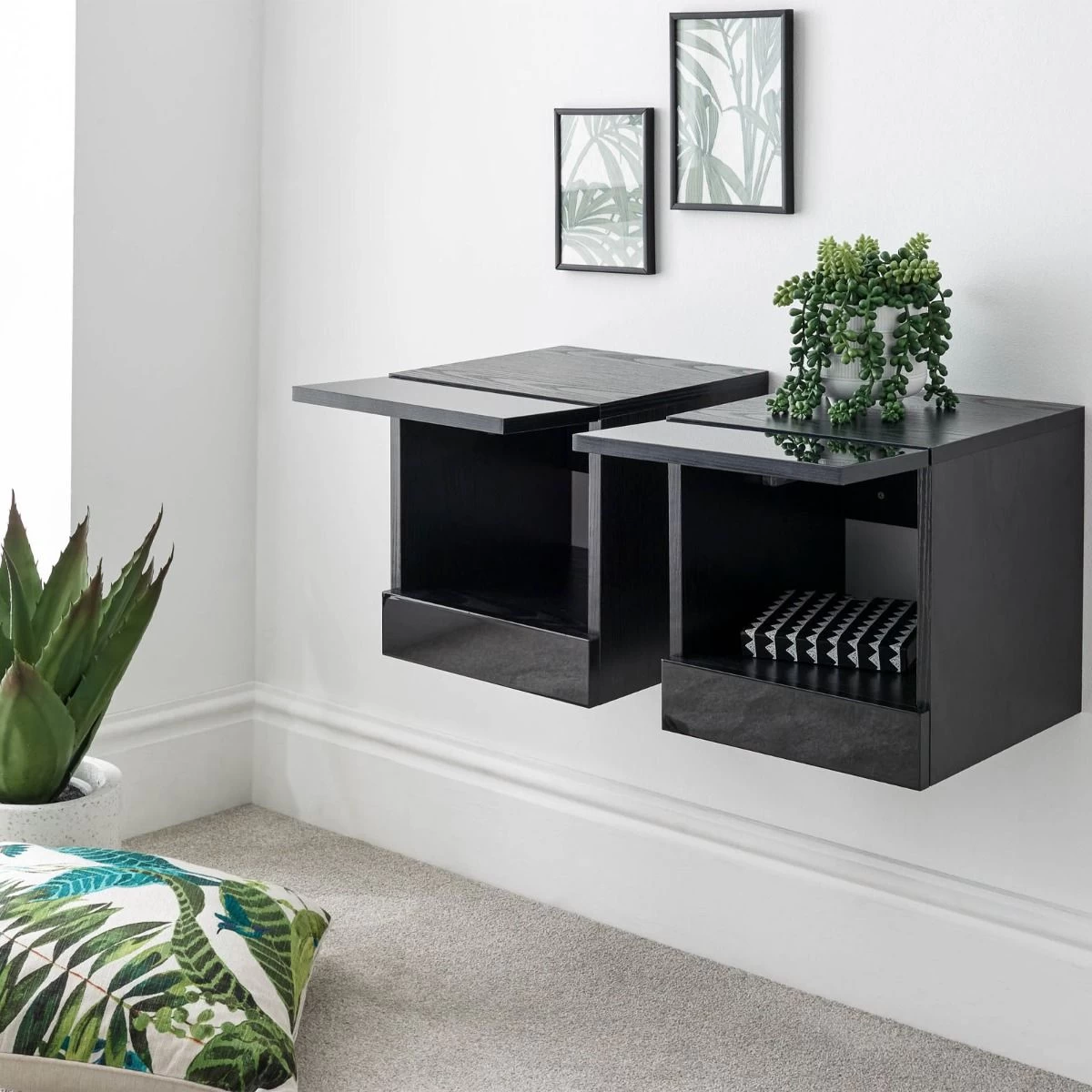 Galicia Pair Of Wall Hanging Bedside Tables – Black