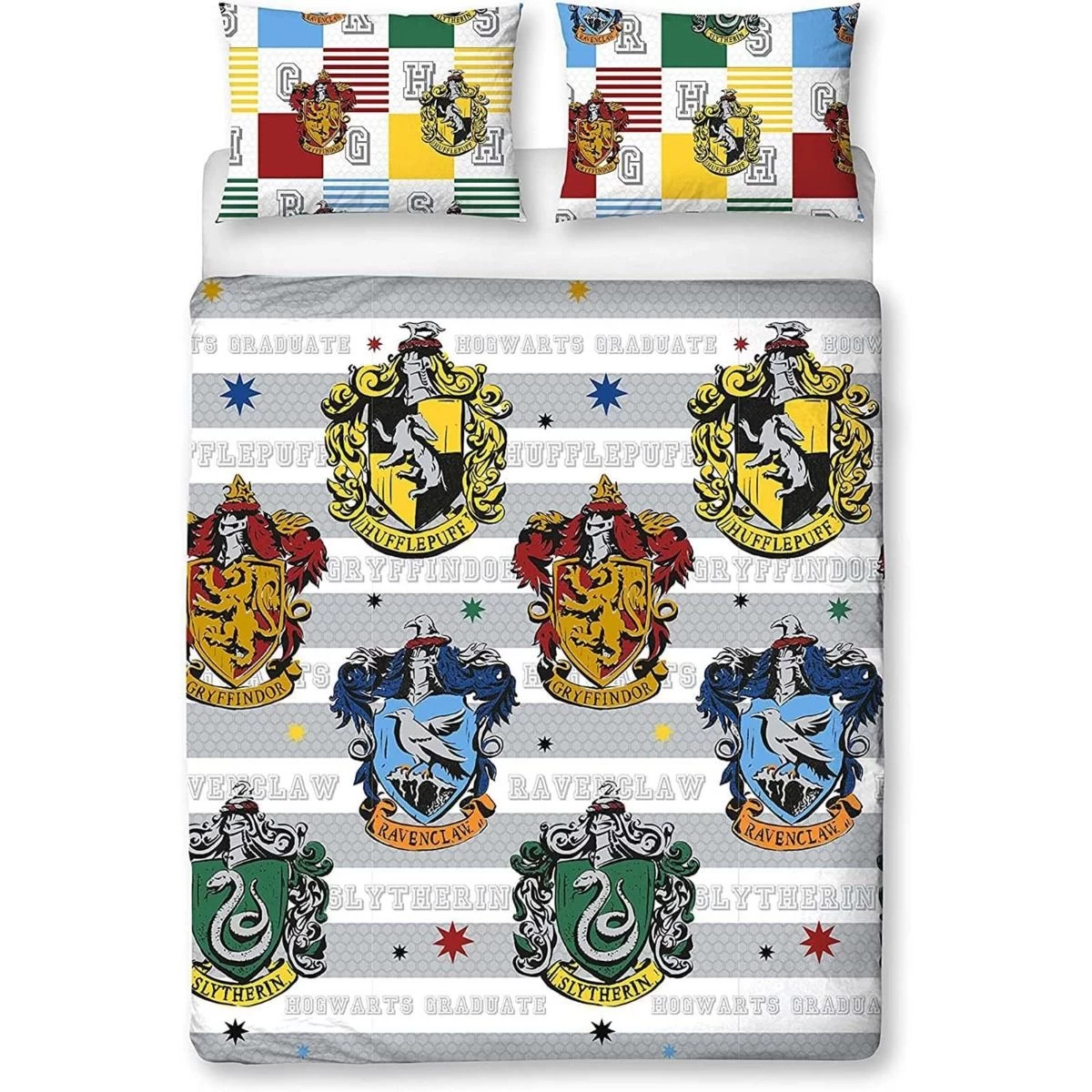 Experience the enchantment of the wizarding world with the Harry Potter Quarters Duvet Set, which features the four elaborate Hogwarts house crests. Whether youโre a brave Gryffindor, a clever Ravenclaw, a loyal Hufflepuff, or an ambitious Slytherin, you can now sleep soundly beneath the emblem of your chosen house! Create your own Hogwarts quarters with this enchanting bedding ensemble and immerse yourself in the wonder of the wizarding world every night. Harry Potter fans, get ready for bedtime adventures filled with spells and secrets!