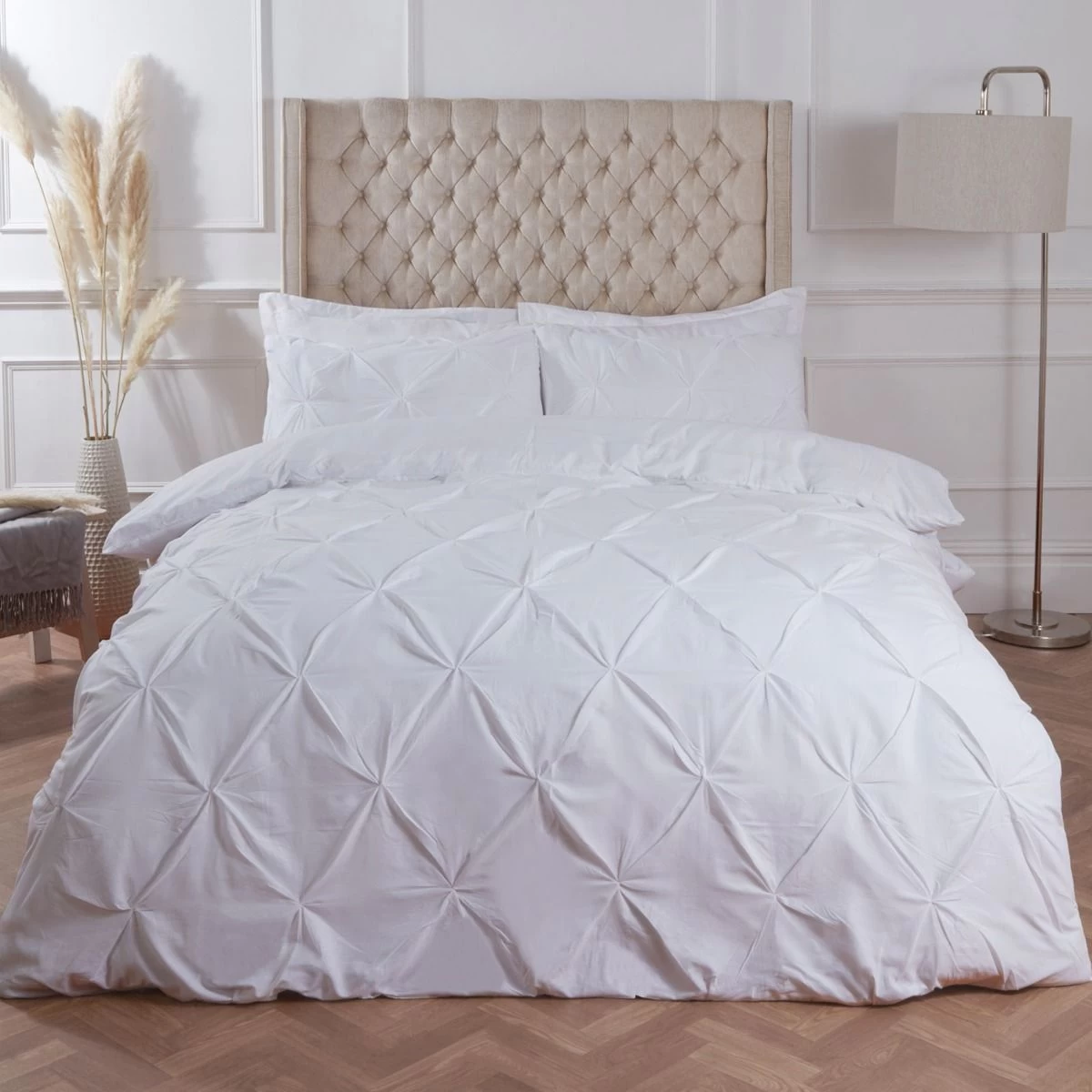 This luxurious Diamond Pintuck duvet cover set would look ideal in any bedroom, and is a perfect way to give your room a fresh look. This duvet set is woven from a mix of soft cotton and polyester, making it comfortable and durable. This easy-care bed linen will give your bedroom that modern feel and once washed it has great resistance to wrinkles, fading and shrinkage. This set includes a duvet cover and matching pillow case(s), all you need for a good night’s sleep. Available in the following sizes :-
