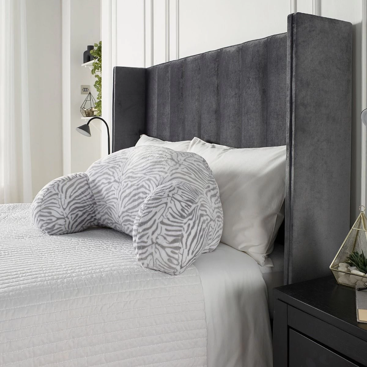 Introducing the Huggleland Zebra Cuddle Cushion in Grey/White, a touch of luxury for your comfort needs. This versatile cushion is your ideal companion for enhancing your reading in bed, TV-watching, and work-from-home sessions, providing the essential support your back and shoulders need for an upright posture. Not confined to just the bedroom, this cushion is a perfect fit for most standard chairs, allowing you to enjoy its comfort throughout your home. With its plush texture and exceptional back support, this cushion offers a comfortable and smooth experience. Its durable design ensures it remains a well-loved part of your daily routine.