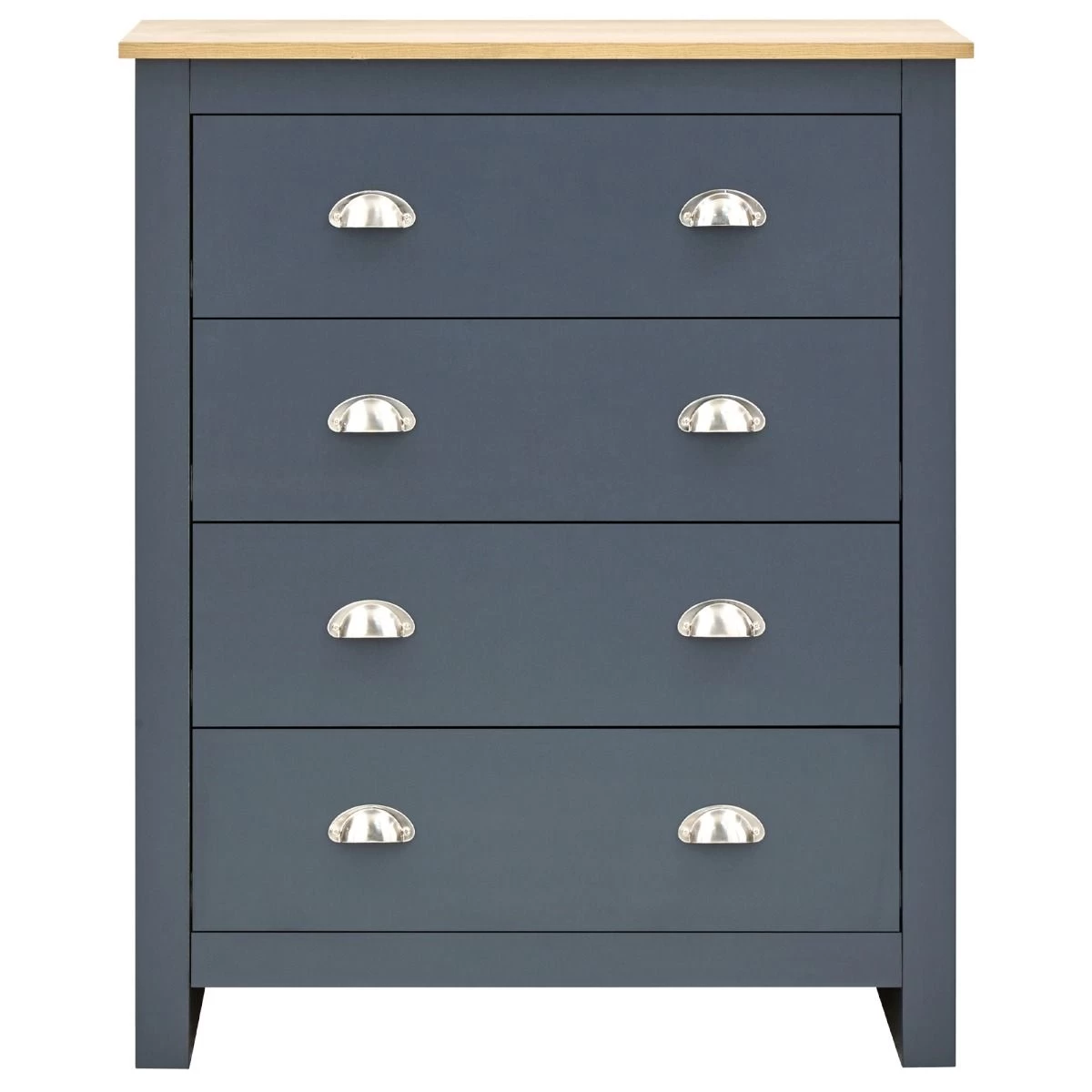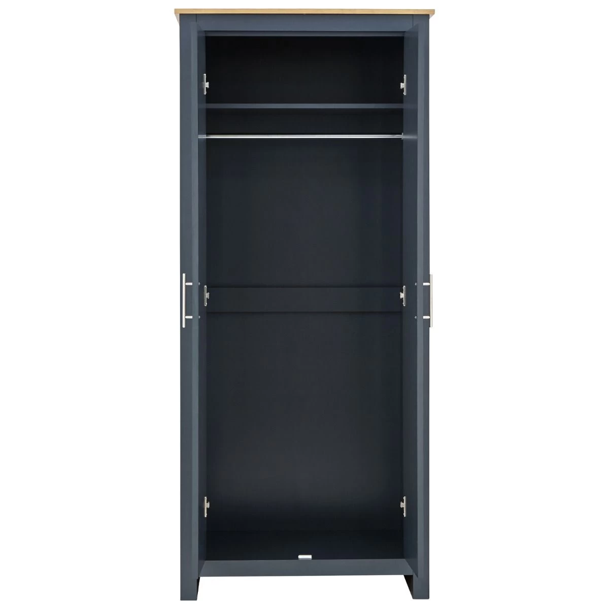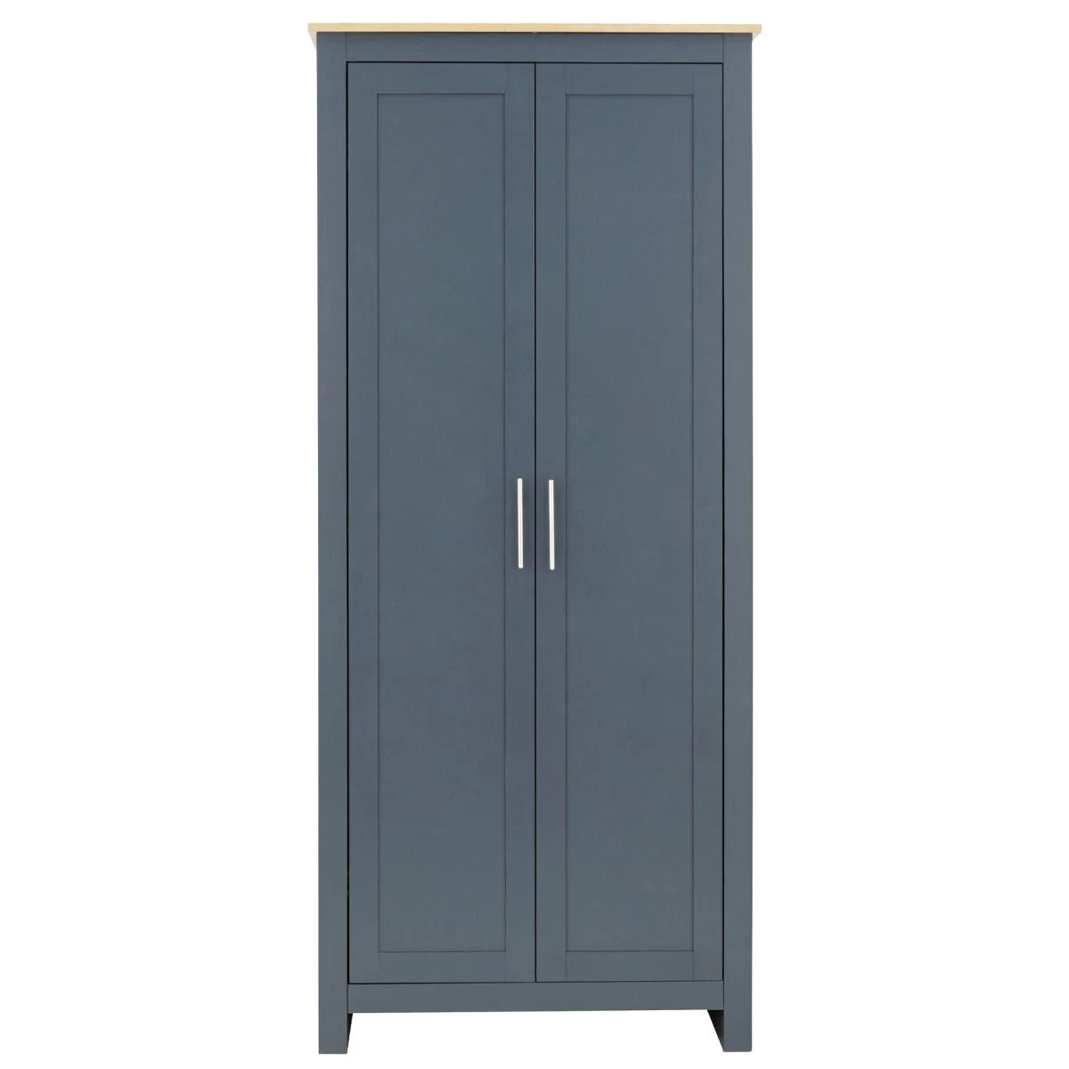 A stylish shaker-inspired furnishing trio that’s perfect for kitting out a bedroom in first-class style. The sleek lines, soft grey, cream or dark blue foiled finish with oak tops and brushed steel handles create a sophisticated impression. The wardrobe, four-drawer chest and neat lamp table provide effective storage with a good mix of hanging, drawer and shelf space. Ideal for a room where understated elegance is the goal.