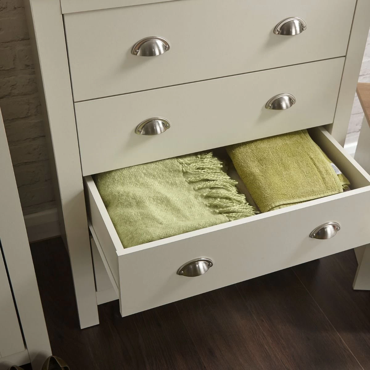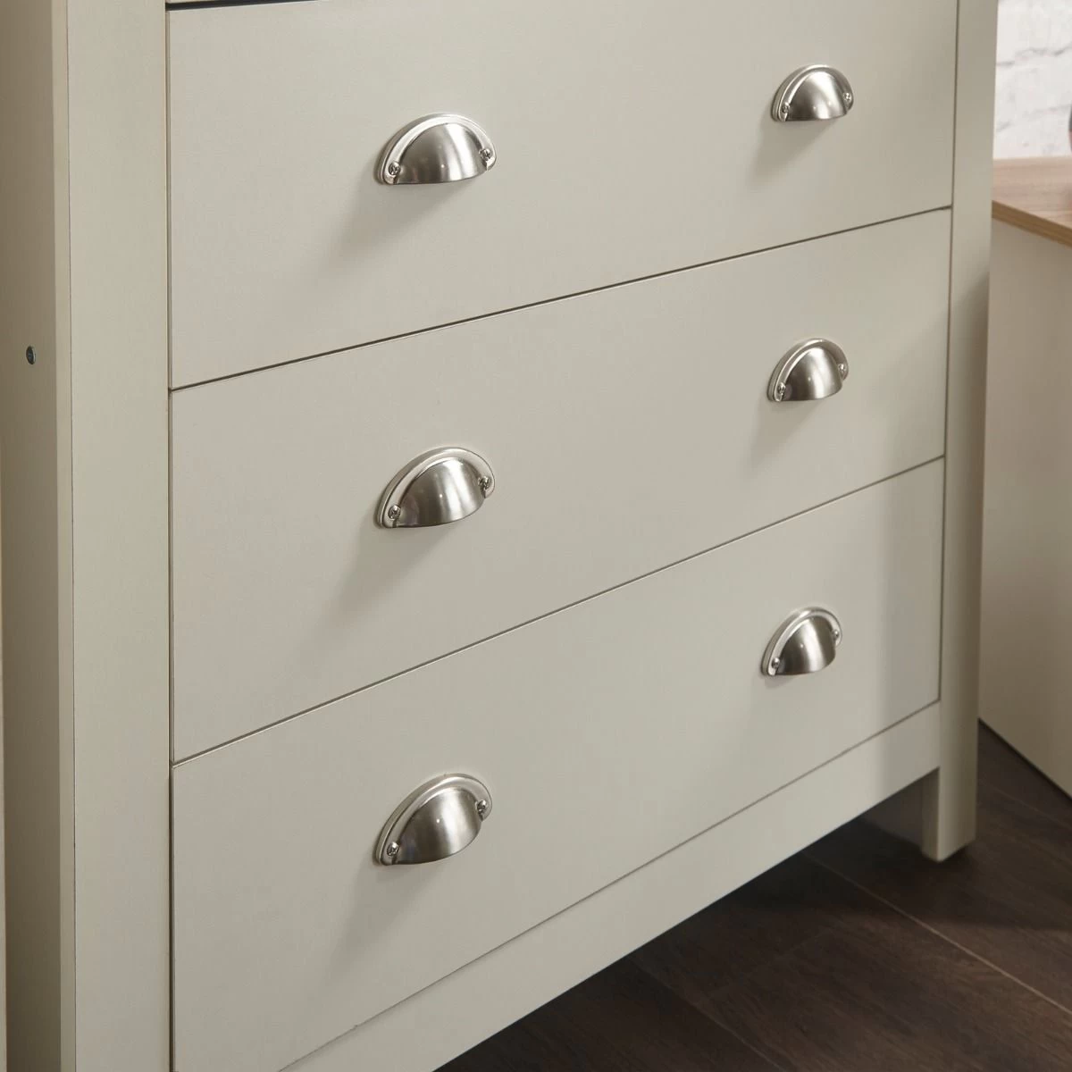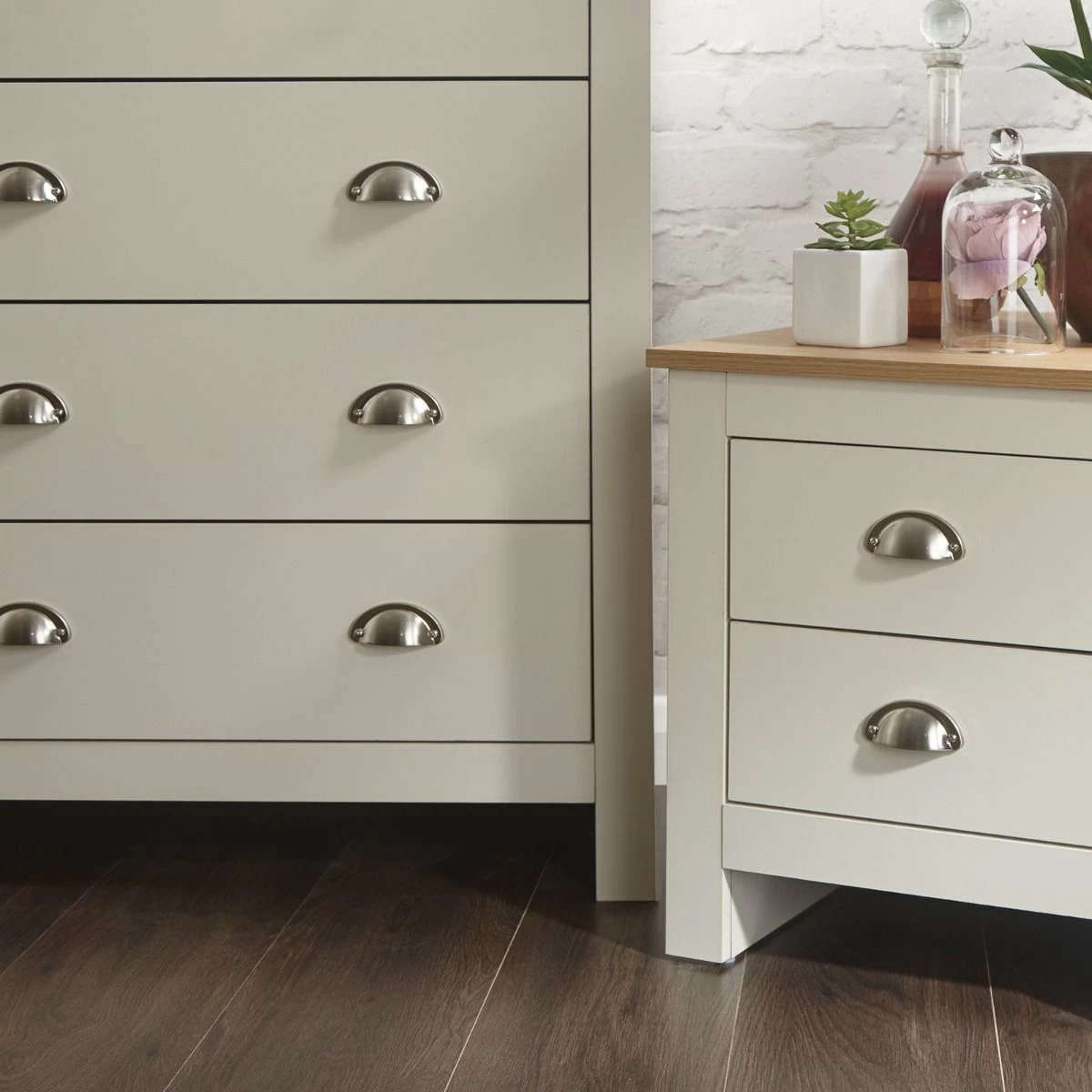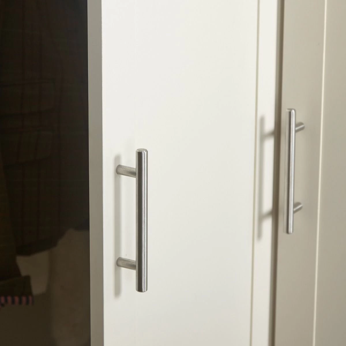 It’s easy to create a bedroom that showcases effortless chic, with this stylish four-piece furnishing pack. The shaker-inspired design exudes understated luxury. Comprising a three-door wardrobe, four-drawer chest and pair of neat lamp tables, each piece is finished in cream or grey foil with an oak top and brushed steel handles. A well-thought-out mix of hanging and flat storage that’s suitable for a double room.