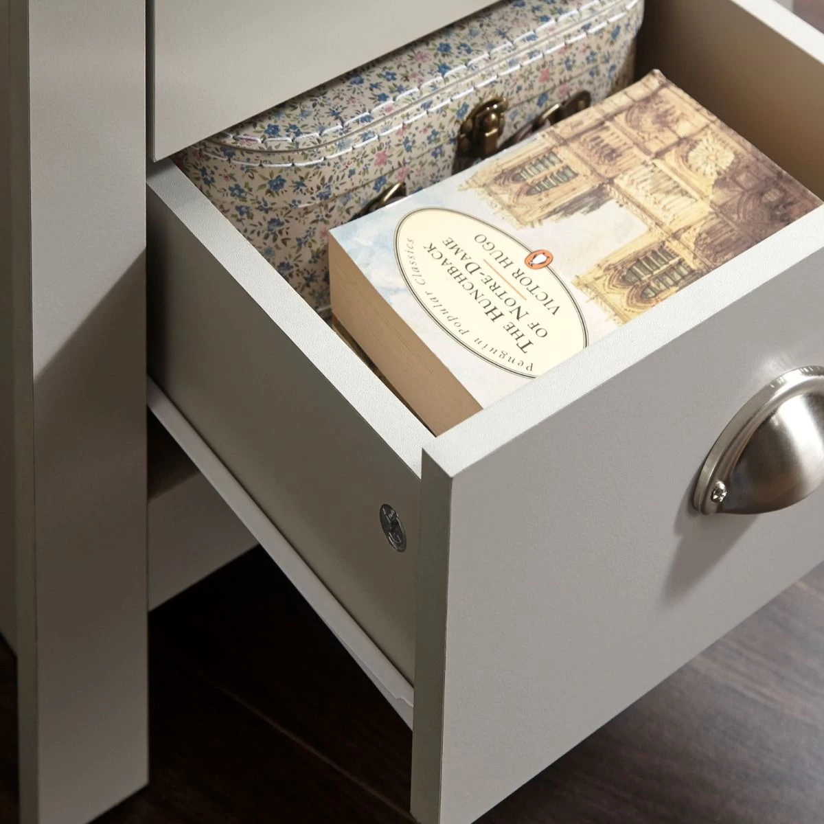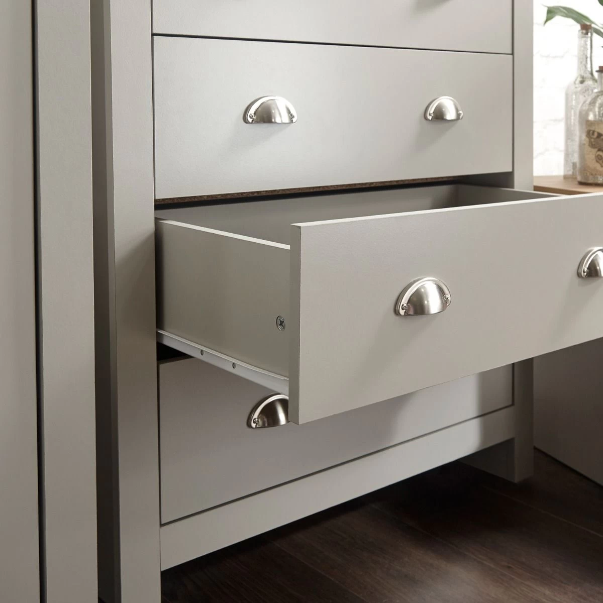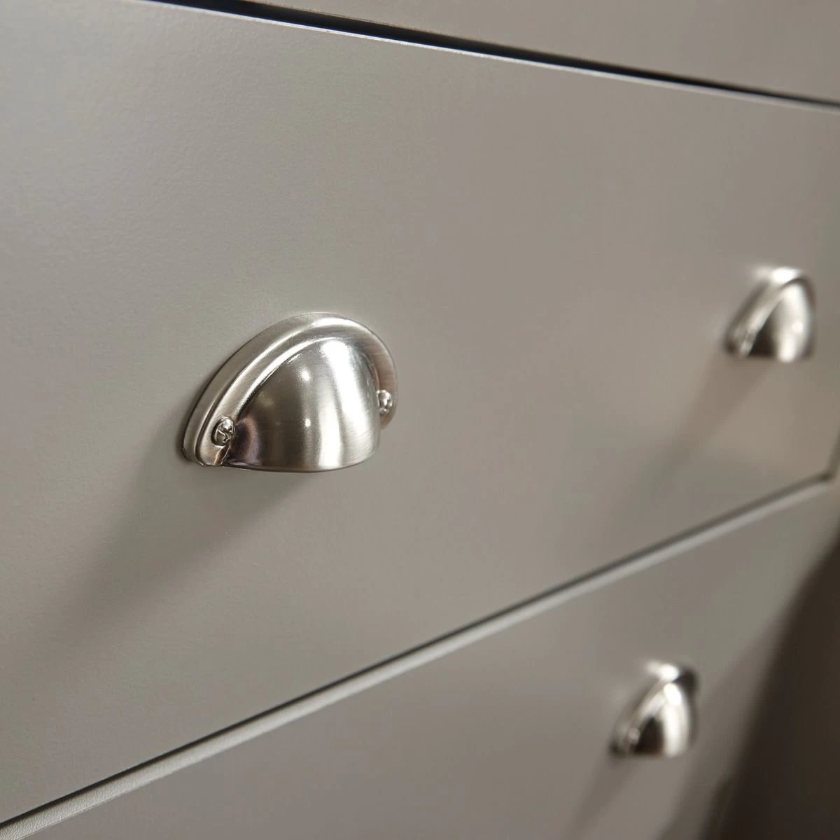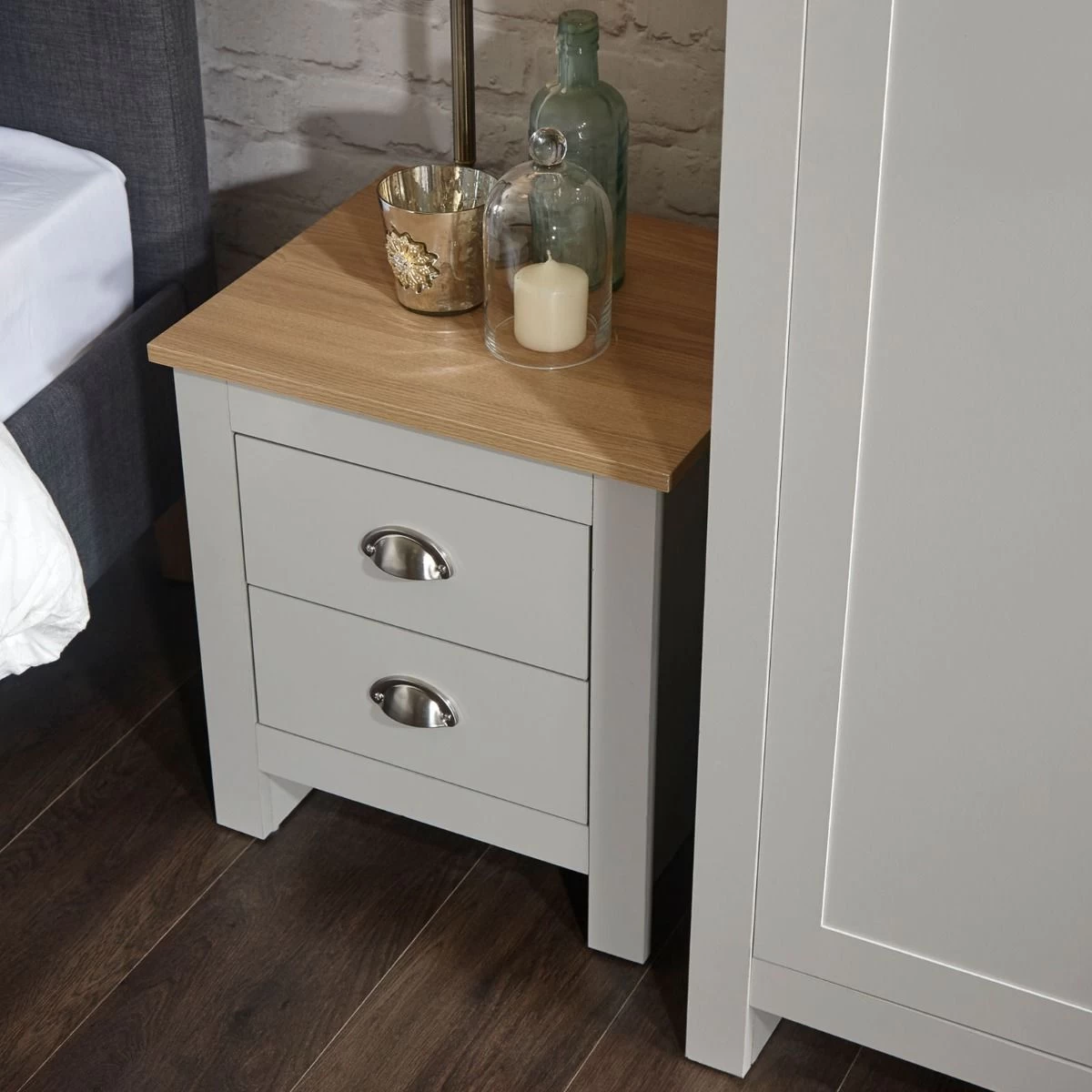 It’s easy to create a bedroom that showcases effortless chic, with this stylish four-piece furnishing pack. The shaker-inspired design exudes understated luxury. Comprising a three-door wardrobe, four-drawer chest and pair of neat lamp tables, each piece is finished in cream or grey foil with an oak top and brushed steel handles. A well-thought-out mix of hanging and flat storage that’s suitable for a double room.