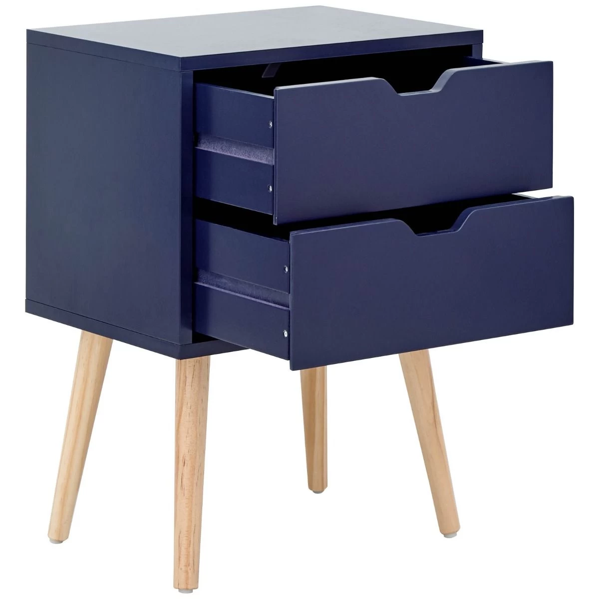 This Scandi-inspired unit makes a virtue out of simplicity. The classic cuboid form is just the right size to accommodate a lamp and a book or two, while the two handy drawers feature classic cut-out handles for simple yet effective operation. The whole is painted in a choice of on-trend colours – including exciting new shades of warm pink, soft green and ink blue – and mounted on pale-wood legs.