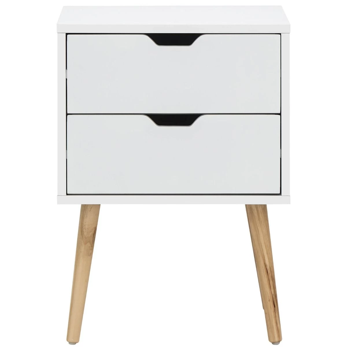 This Scandi-inspired unit makes a virtue out of simplicity. The classic cuboid form is just the right size to accommodate a lamp and a book or two, while the two handy drawers feature classic cut-out handles for simple yet effective operation. The whole is painted in a choice of on-trend colours – including exciting new shades of warm pink, soft green and ink blue – and mounted on pale-wood legs.