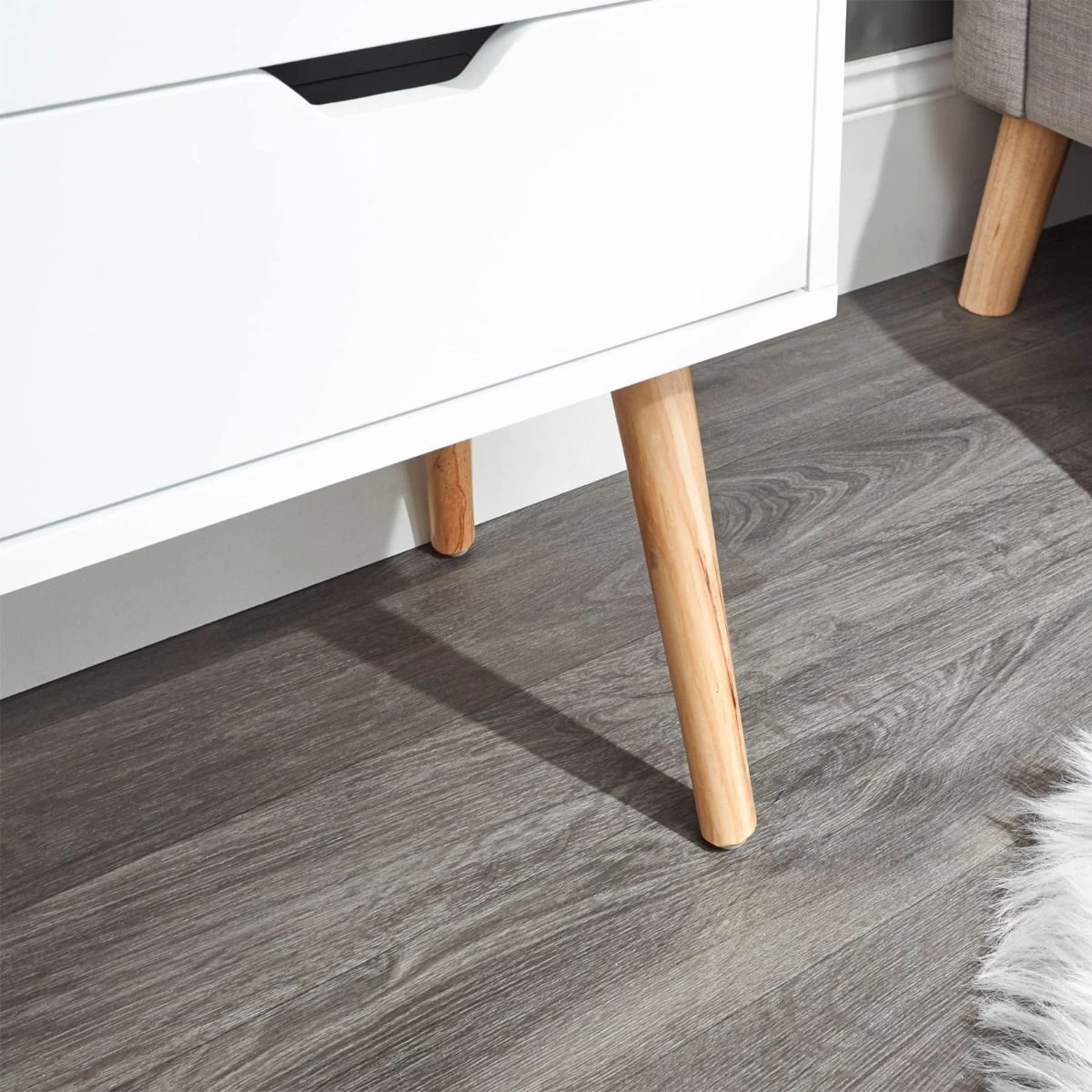 Cut out door pulls further accentuates the minimalist Scandi design.