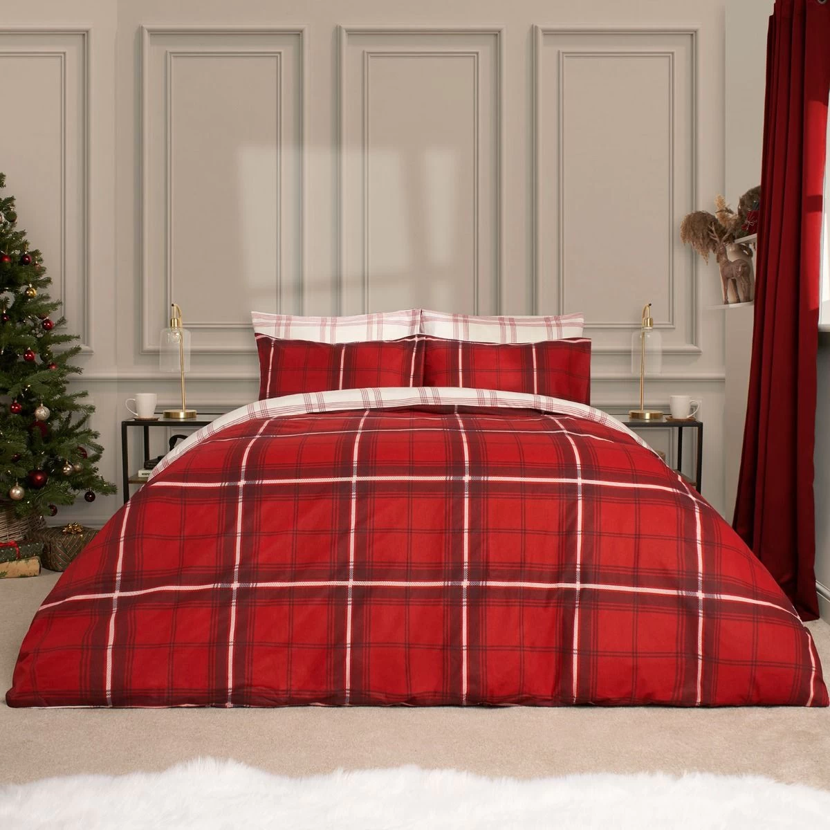 Elevate your seasonal decor with the OHS Christmas Check Reversible Duvet Set in Red/White. The classic checkered pattern captures the essence of the season, while the reversible design allows you to switch between red and white backgrounds. Create a festive atmosphere in your bedroom and embrace the spirit of Christmas with style and comfort.