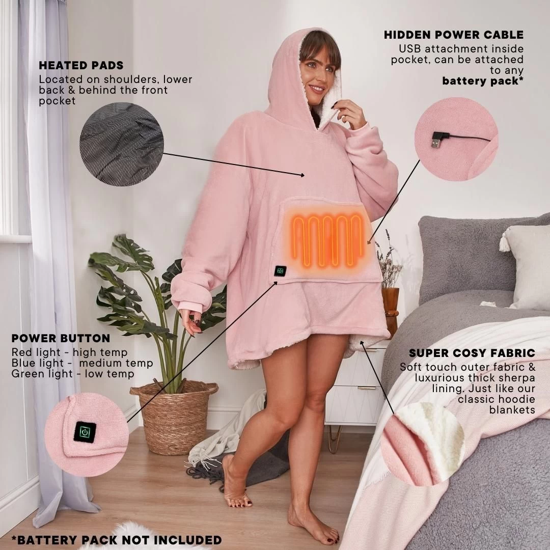 Expertly matched with elastic cuffs and a double opening front pocket, this will make a fantastic gift for friends, family or even yourself! Perfect for adults and kids alike. Crafted for optimum ease this is a durable, one-step care garment, used as a wearable sweatshirt. Simply wash at 30 degrees. One size fits all with this product and it’s ideal for packing up and taking with you to outdoor events, just plug in a portable charger/power bank* and you are good to go.