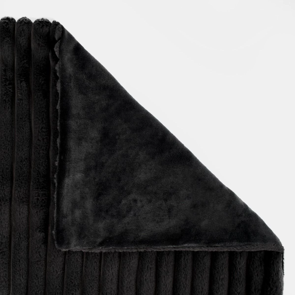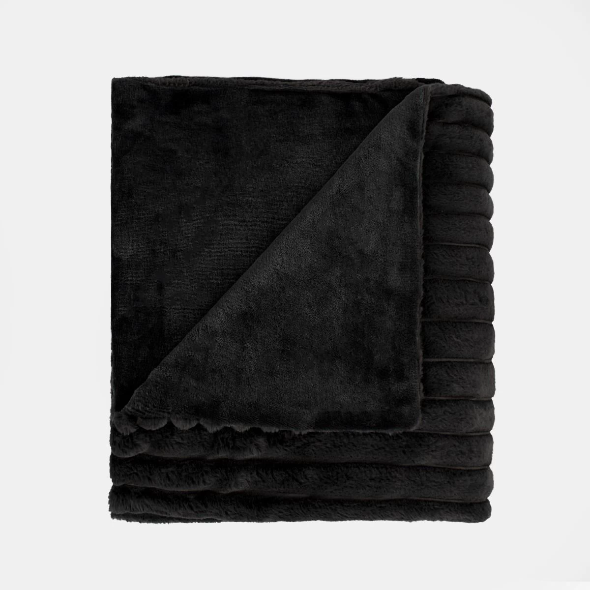 OHS Faux Fur Thick Rib Throw, Black – 125 X 150cm