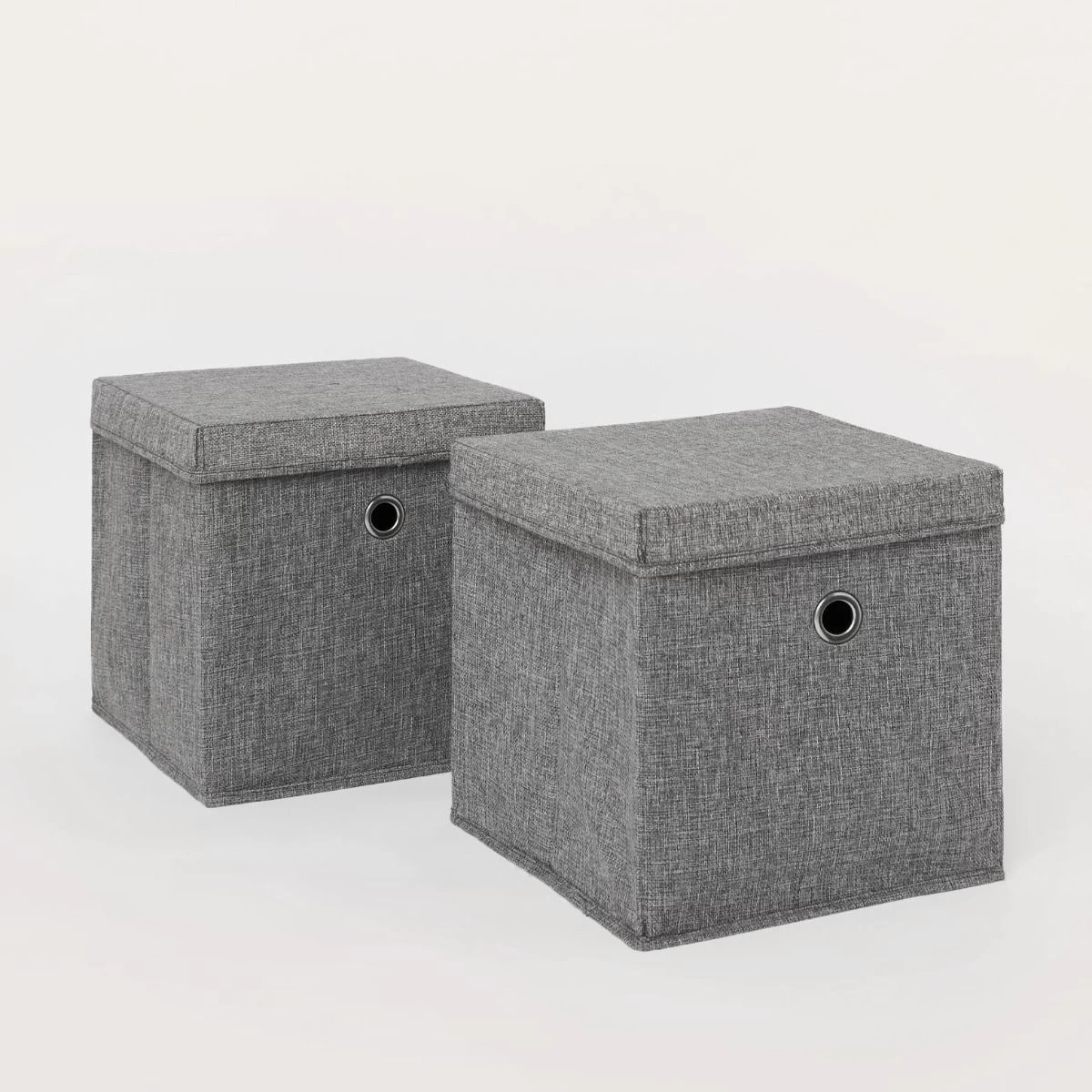 Includes: 2 x Faux Linen Storage Boxes with lids.