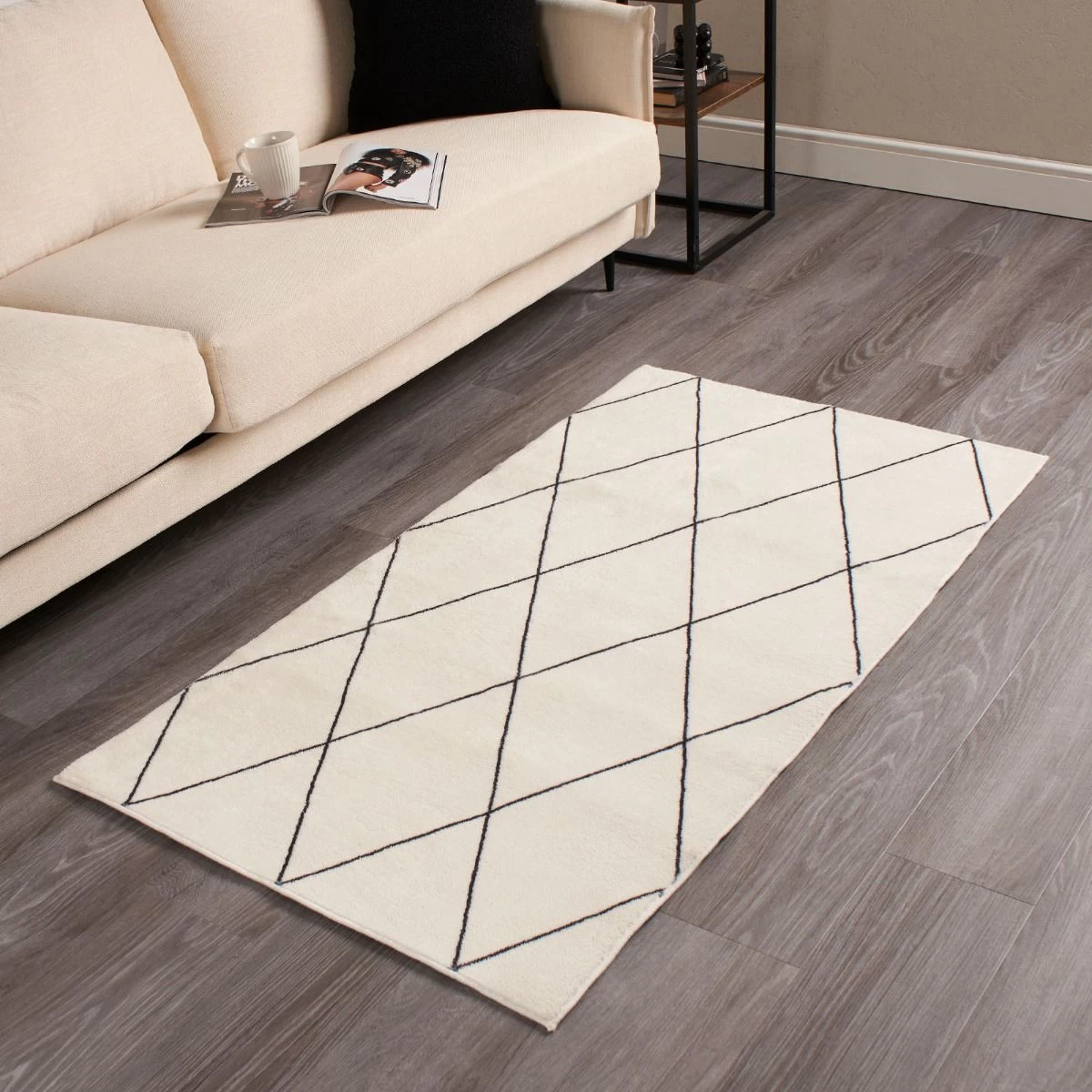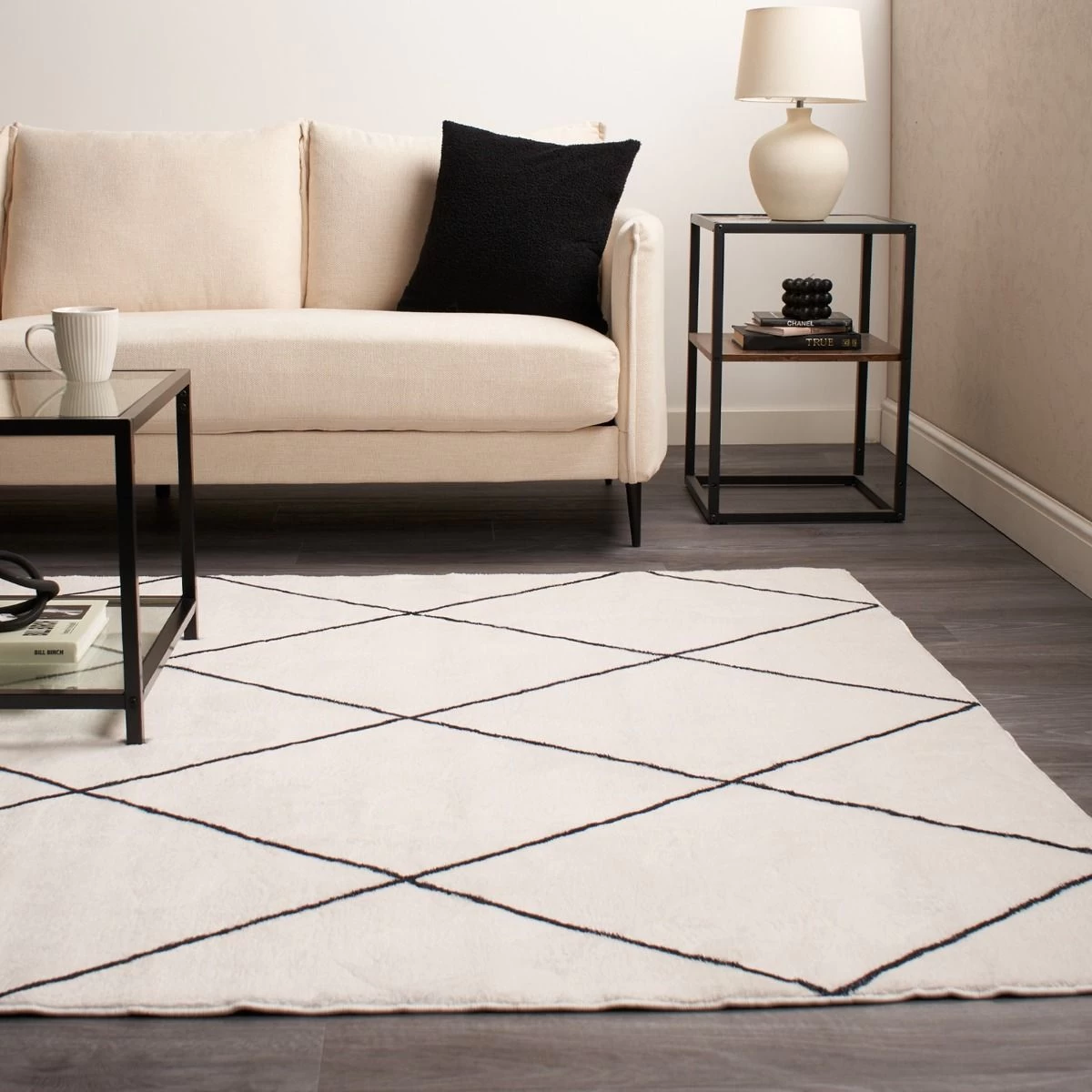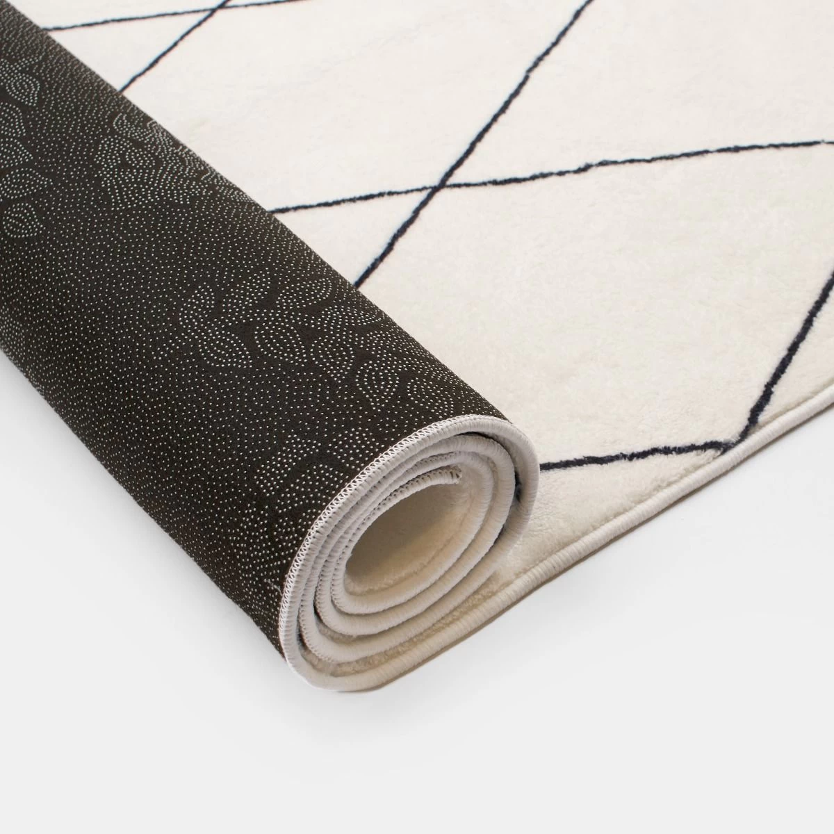 The OHS Geo Printed Flat Rug in Cream & Black is a stylish addition to your decor. Its tufted construction provides a plush and comfortable feel underfoot, while the compelling geometric pattern adds a contemporary and stylish touch. This rug effortlessly elevates your space with a blend of elegance and modern design.