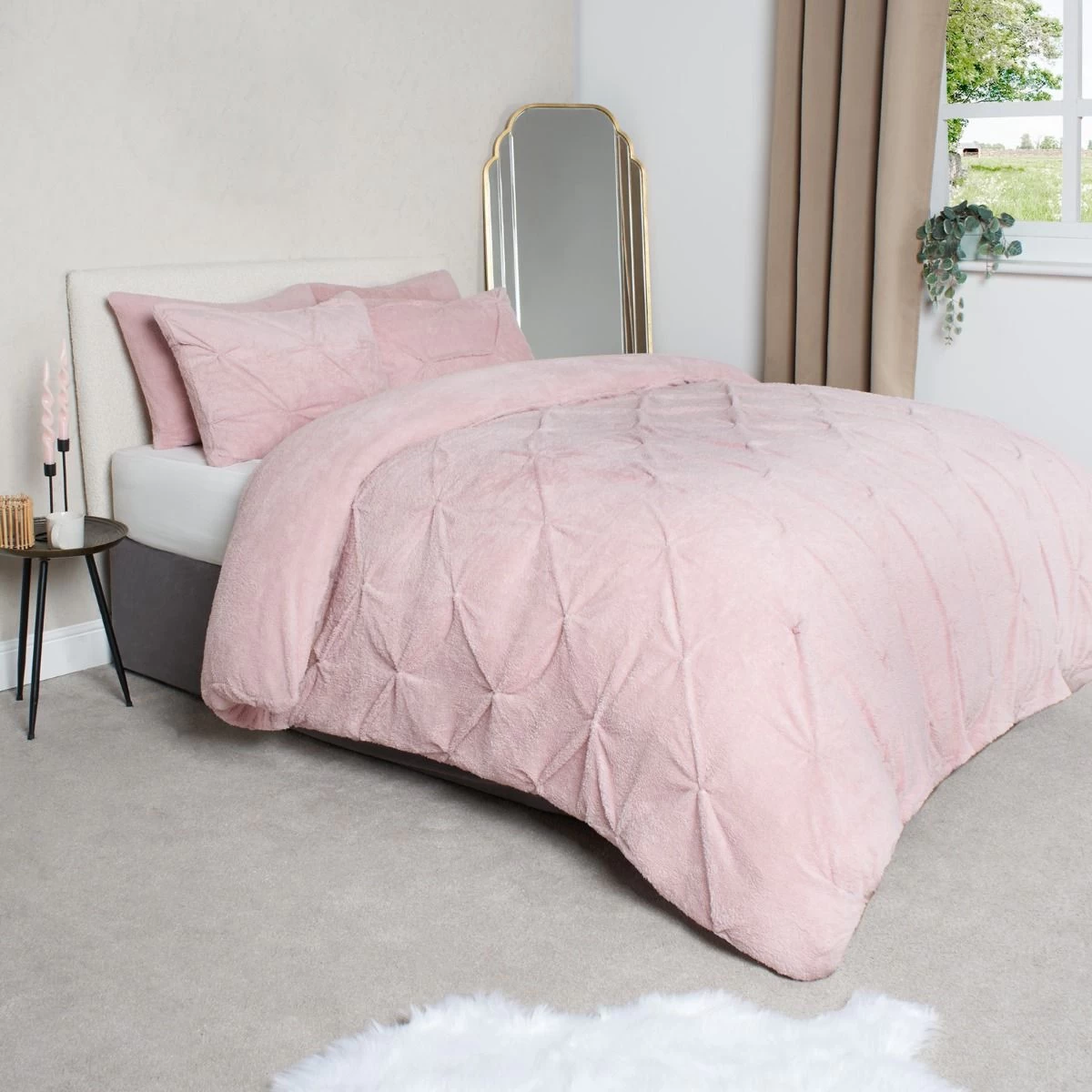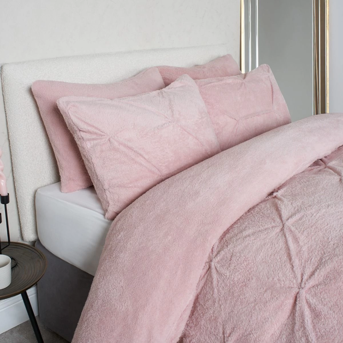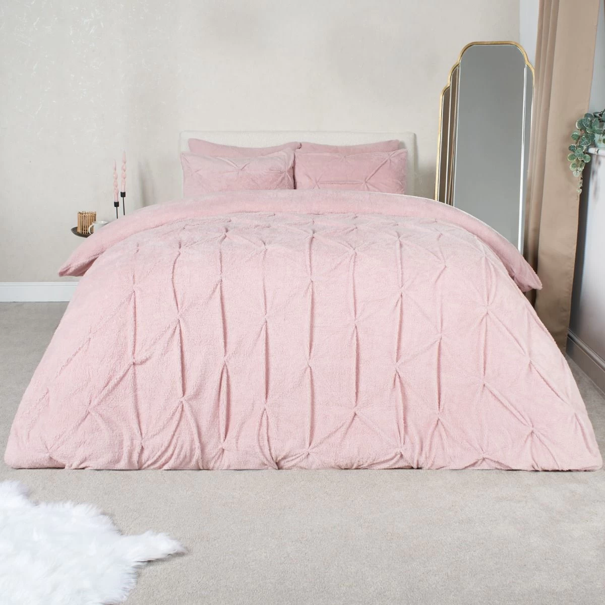 Introduce elegance and texture to your bedroom with the OHS Teddy Pintuck Duvet Set. The sophisticated pintuck design, reminiscent of teddy bear fur, adds a touch of luxury to your sleeping space. Crafted for both style and comfort, this duvet set promises a cosy and inviting atmosphere. Elevate your bedding with a blend of charm and comfort using this stylish addition.