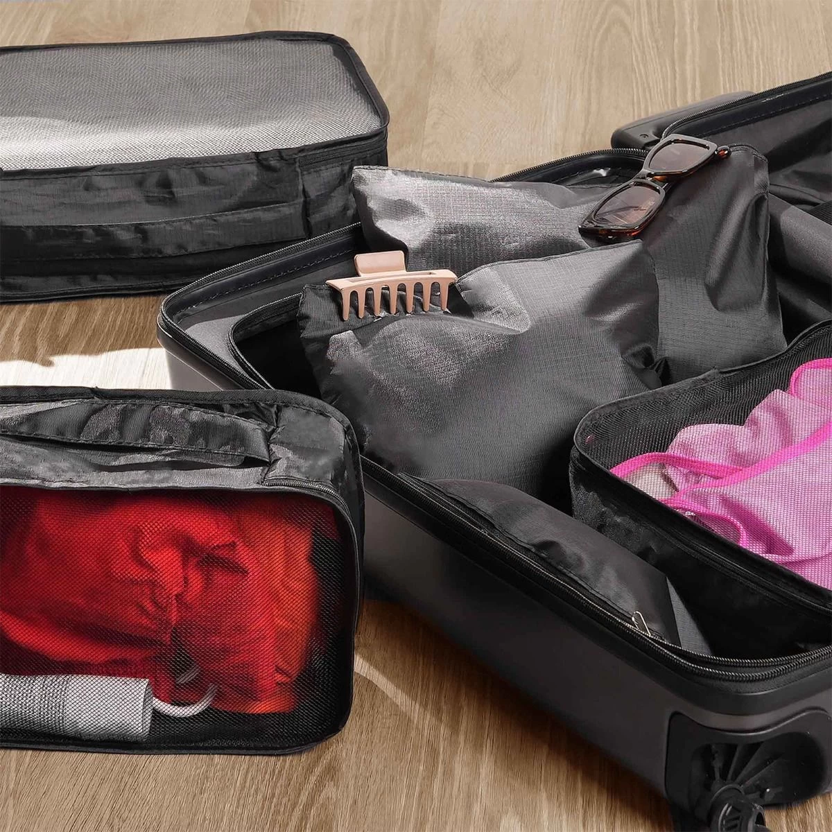 Our travel packing cube and bags sets come in a 4, 6 or 10 pack set, perfect to organise your clothes and make packing for your trip easy and convenient. Some of the bags come with a mesh top to make it easy to identify the contents, so you can grab whatever you need quickly, this can also make airport checks quick and efficent. Seperate your clothes, toiletries and travel essentials to make finding what you need easier.