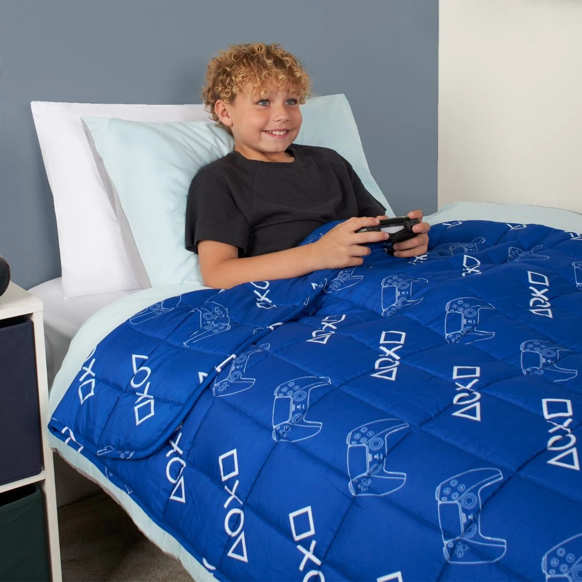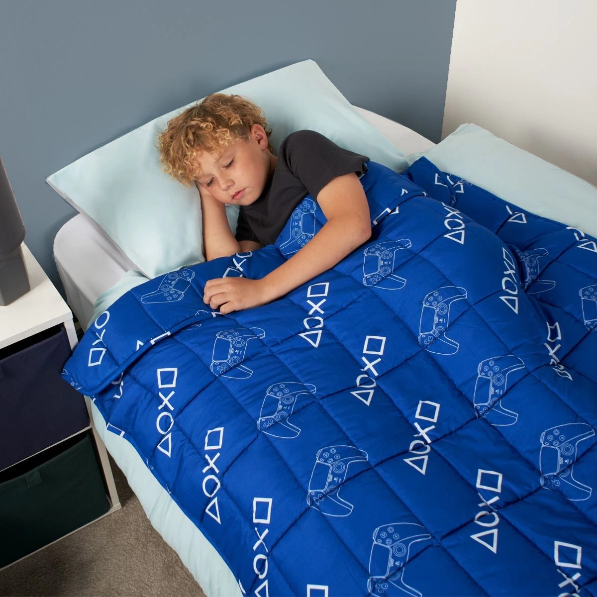 Introducing the PlayStation Player Weighted Blanket 3kg, the ultimate way to level up your child’s sleep experience! This isn’t just any blanket; it’s designed to cocoon your little gamer in a comforting embrace that’s as soothing as a pause in a high-stakes game. Whether they’re exploring virtual worlds or conquering challenges, this weighted blanket creates a calming haven that promotes relaxation and peaceful sleep. Perfect for unwinding after a day of virtual victories, PlayStation adventures, or simply getting lost in a good book, it’s a must-have for every young PlayStation enthusiast’s bedroom. With its plush texture and gaming-inspired charm, bedtime has never been this cosy and exciting. Elevate sleep to a whole new level with this fantastic weighted blanket!