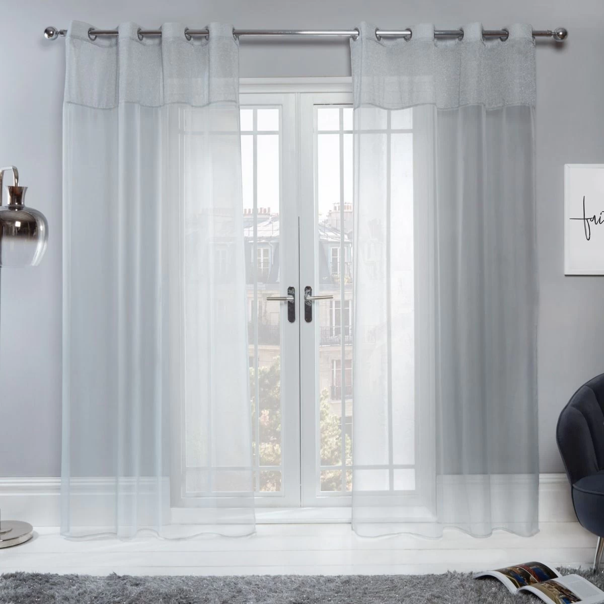 Sienna Amelia Lurex Voile Net Curtains Eyelet, Silver Grey – 55″ X 87″