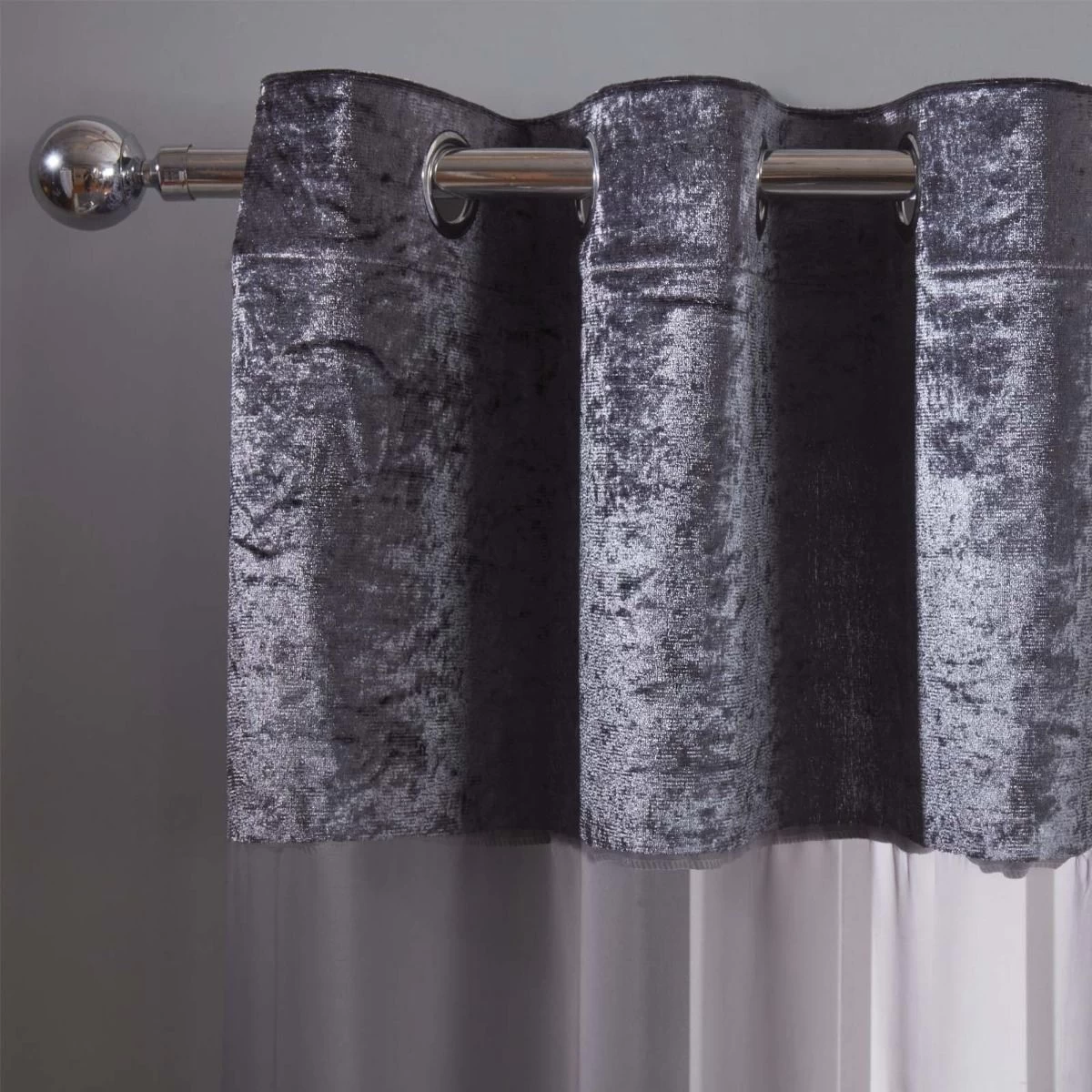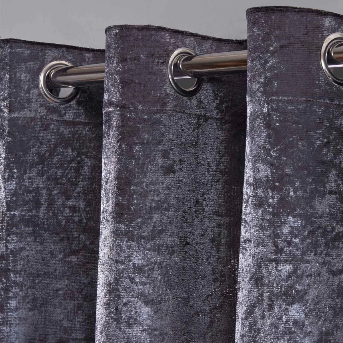 Sienna Crushed Velvet Voile Curtains, Charcoal – 55″ X 87″