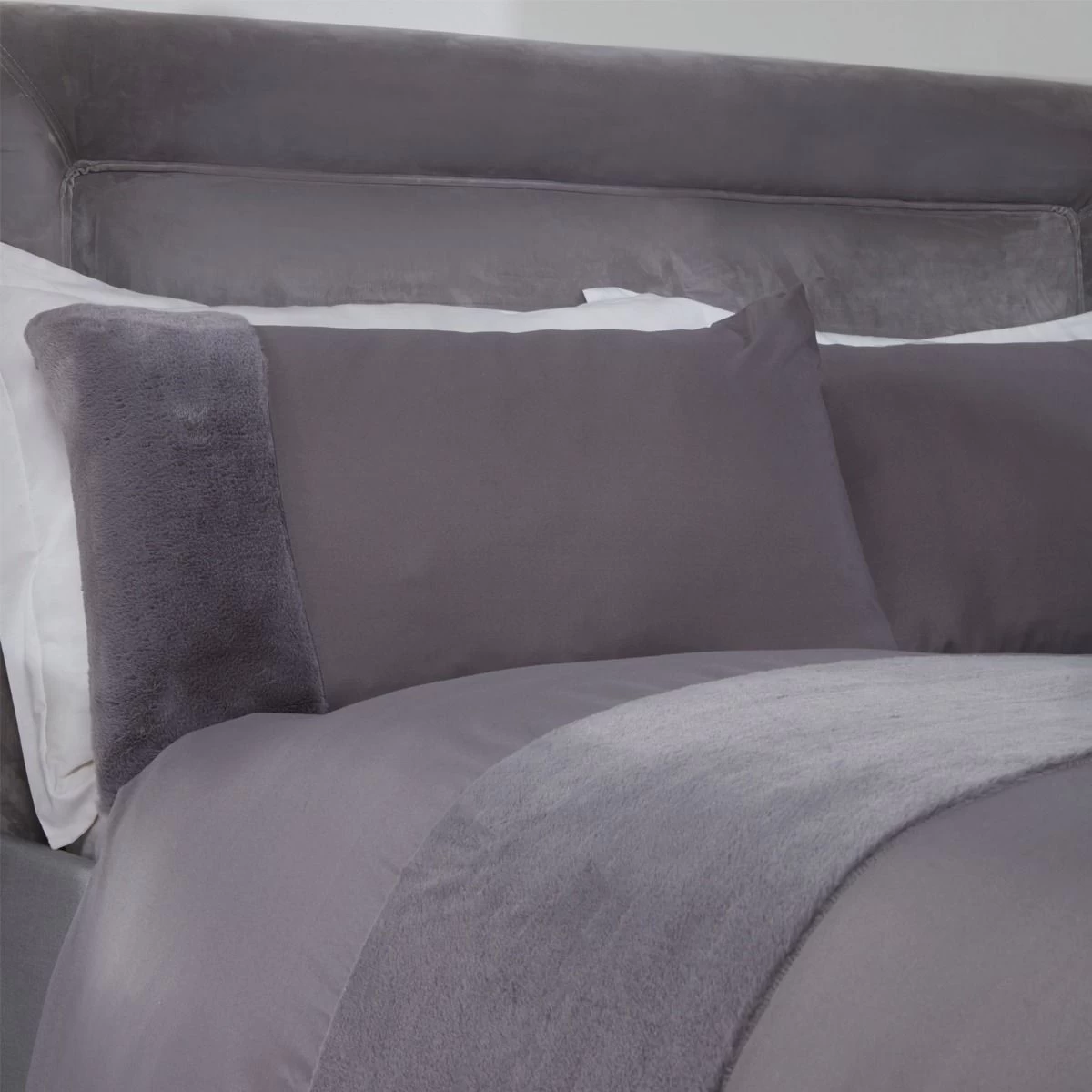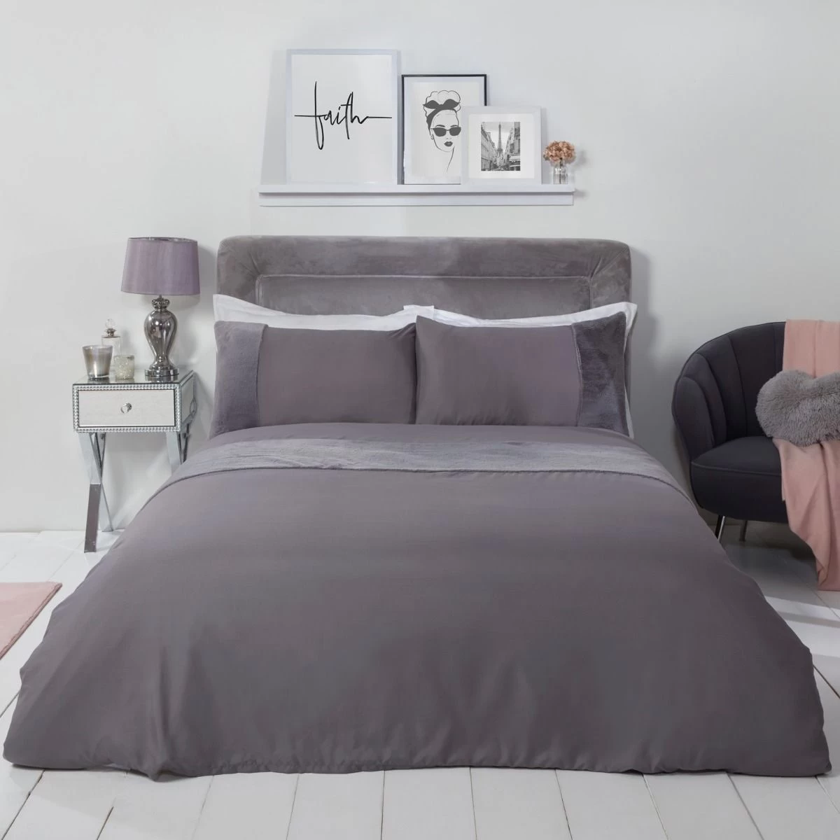 Our Sienna faux fur fleece panel duvet will be a great addition to your home, featuring a soft faux rabbit fur fleece band towards the top of the duvet, and a panel on the edge of the pillow for added comfort, this item is a perfect way to give your room a vibrant, warm fresh look. This duvet set is made with super soft touch faux rabbit fur polyester and durable polyester, making it comfortable and stylish. This easy-care bed linen will give your bedroom that modern feel and once washed it has great resistance to wrinkles, fading and shrinkage. This soft faux fur panel set includes a duvet cover and matching pillow case(s), all you need for a good nights sleep. Available in the following sizes:-
