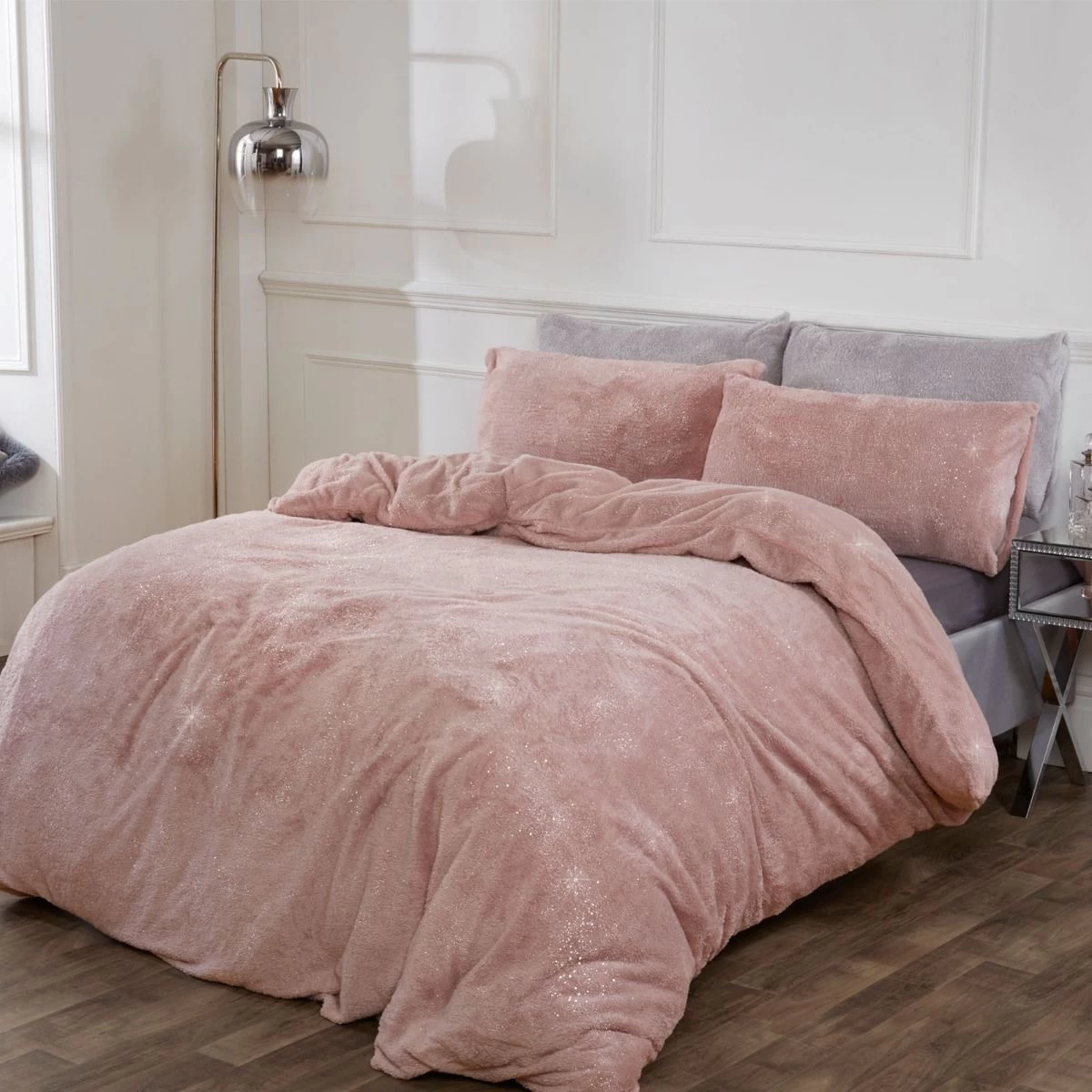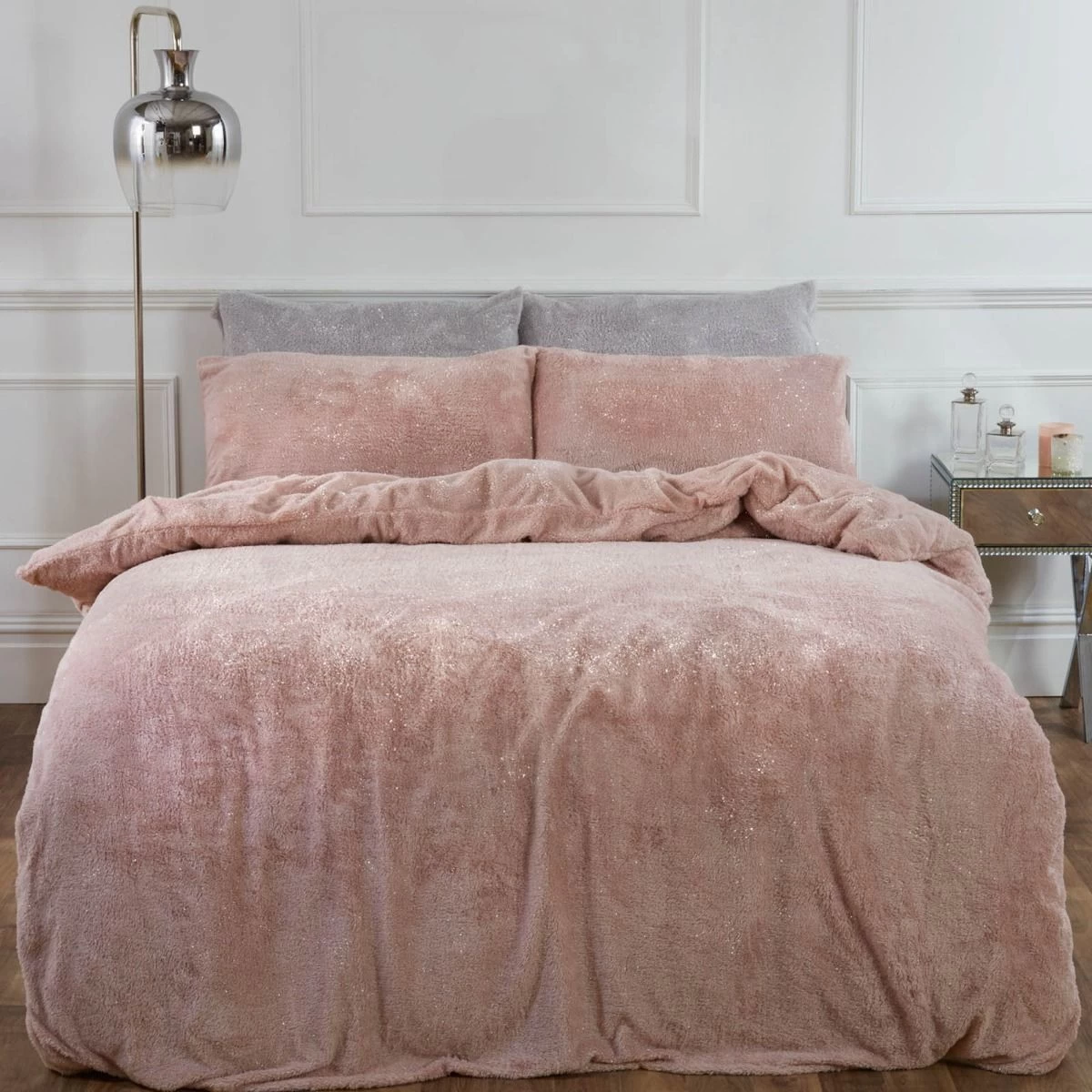 Colour/Design: Glitter Teddy fleece super soft bedding is available in Blush Pink, Burgundy Red, and Silver.