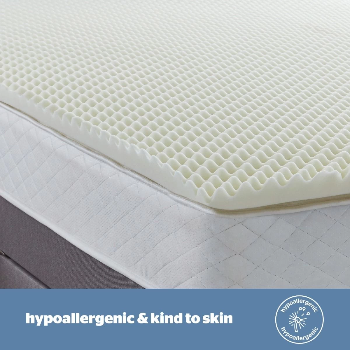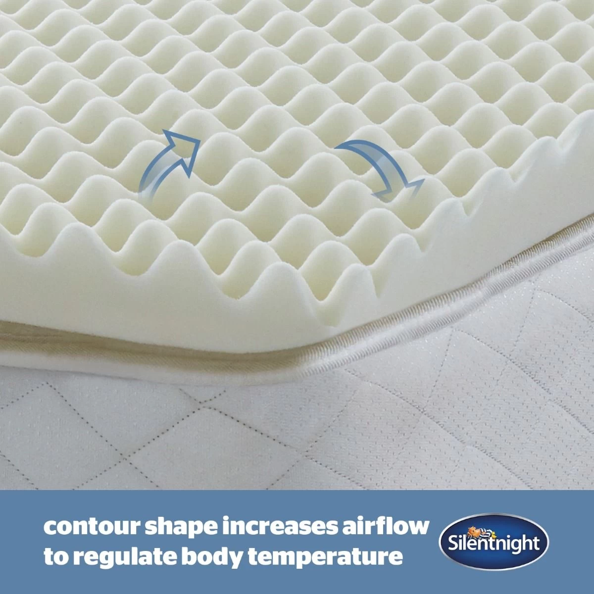 The Orthopaedic Support Mattress Topper by Silentnight offers comfort, support, and pressure relief. The 3cm deep foam mattress topper features an innovative profiled design which is designed to relieve joint pain and muscle stress, so you can have a peaceful and relaxing night’s sleep whilst reducing pressure points. The ergonomic design also encourages airflow to prevent overheating.