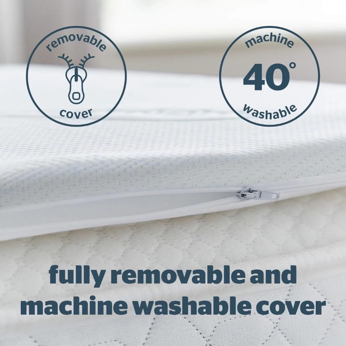 The Impress Memory Foam Mattress Topper by Silentnight has been designed to offer both soothing pressure relief and ultimate comfort. The mattress topper features soft and reactive 2.5 cm deep memory foam that moulds to your unique body shape helping to reduce the pressure points on your spine, giving relief to the muscles and reducing aches and pains. Comes complete with a removable cover that is soft to the touch and will provide exceptional comfort for a perfect night’s sleep.
