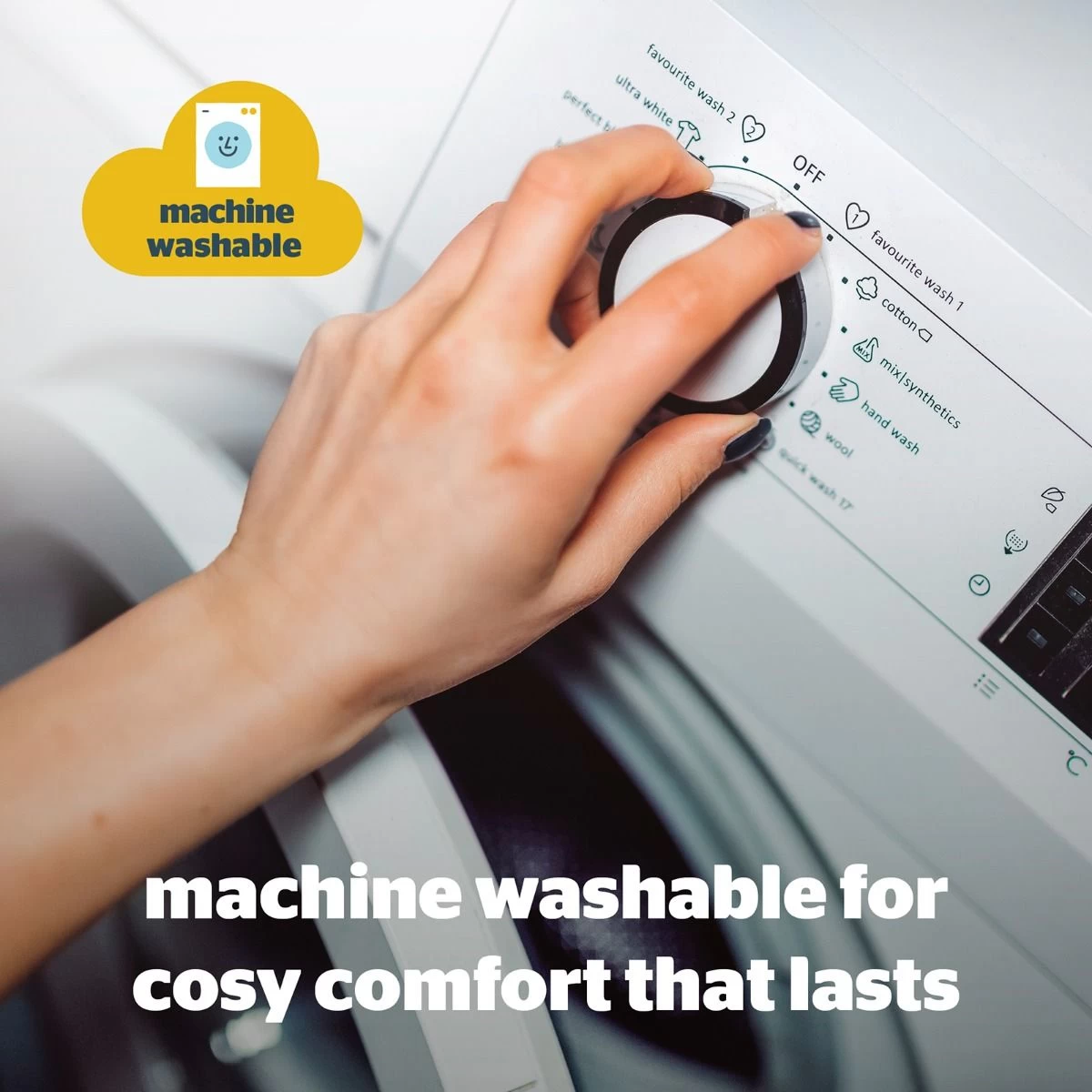 Washing Instructions: Machine washable at 40°C.
