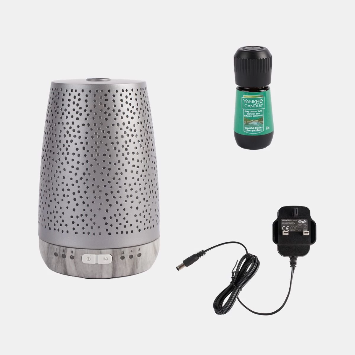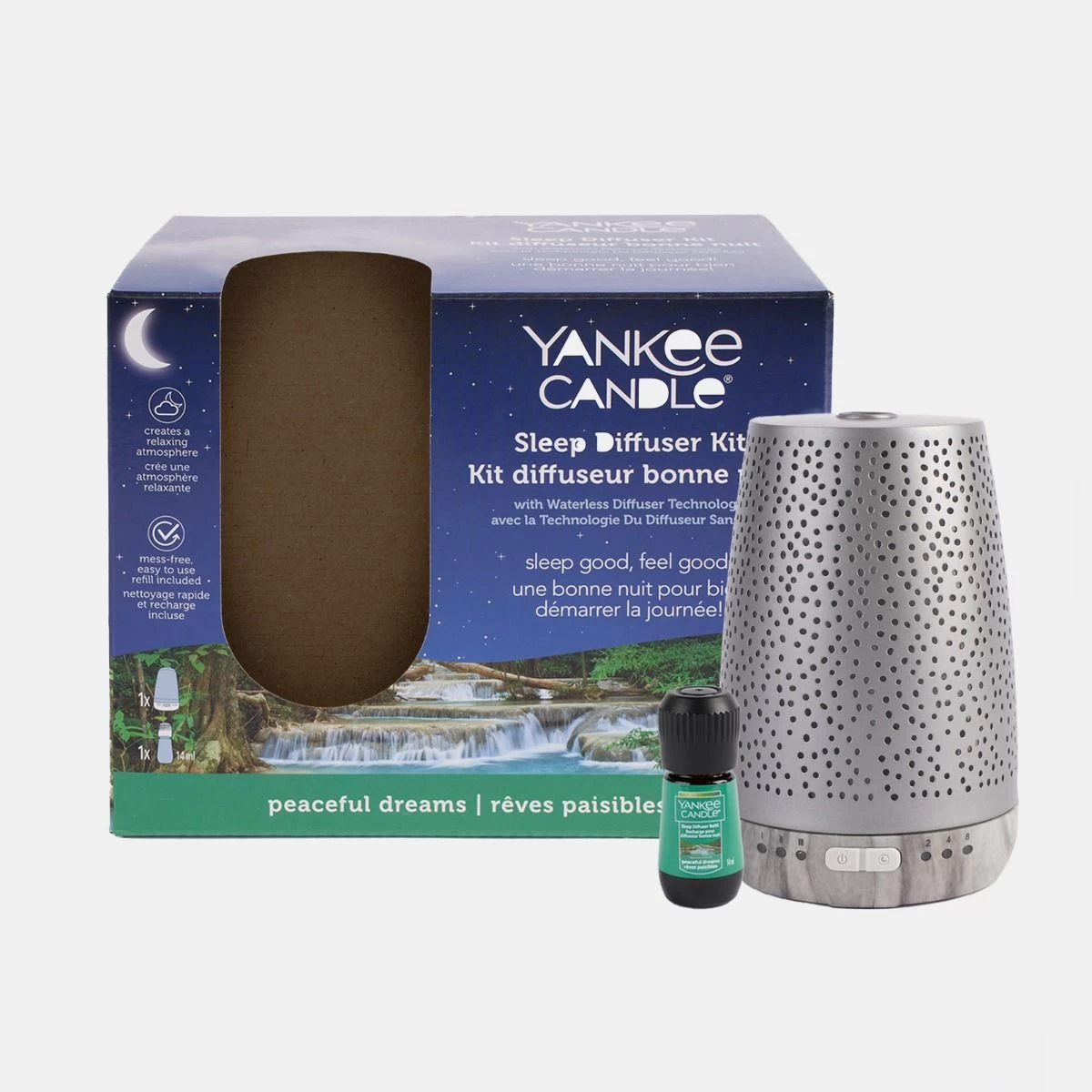Enjoy your journey to the land of nod with this Yankee Candle Sleep Diffuser Starter Set. Containing a Sleep Diffuser and 1 ‘Peaceful Dream’ Refill, this set would make a wonderful gift for someone special – including yourself! The new sleep diffuser range is made with ingredients known for their calming properties – such as lavender, eucalyptus and cedarwood. They encourage you to relax, sleep good and feel good! It is also safe to use, thanks to the programmable 2, 4 and 8 hour timer with automatic shutoff. In addition to being mess-free (no water required), you can even adjust the strength of the fragrance (low, medium, high), depending on your preference and room size. The included fragrance is a dreamy blend of tropical fruit, sweet rose and cedarwood, however, you can use the diffuser with any specially formulated Yankee Candle Sleep Diffuser Refills.